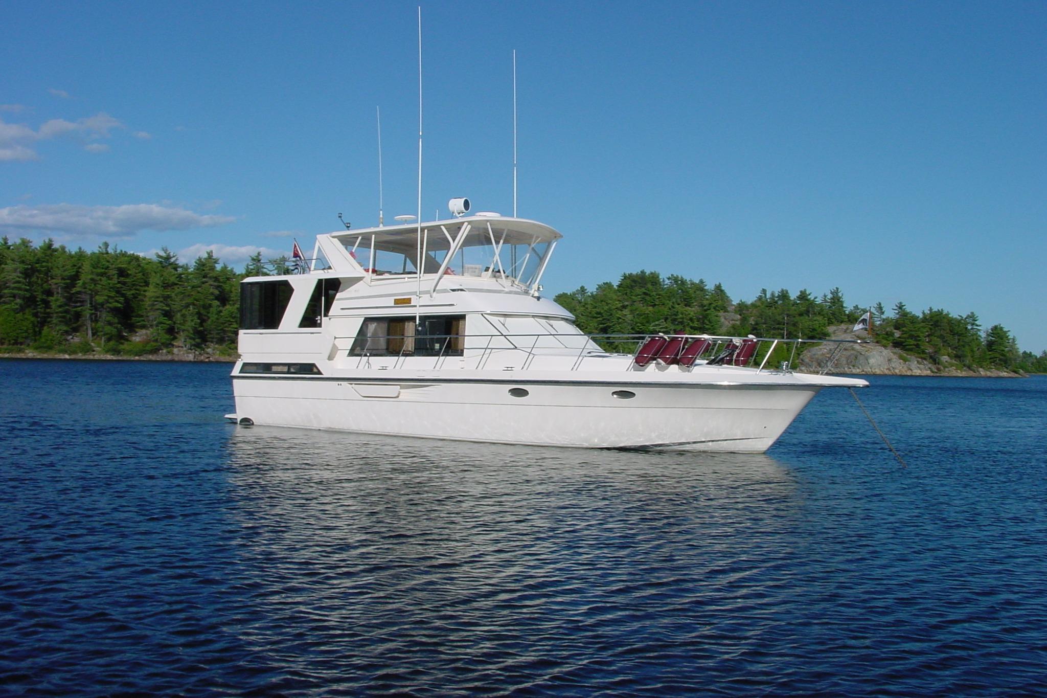 Classic 50’ aft deck motor yacht, “Eagles Nest” offers spacious accommodations, a beautiful teakwood interior, and comfortable staterooms for family or guests. The large salon, flybridge, and aft deck provide excellent entertainment and lounging space, making her an ideal platform for Great Lakes cruising.