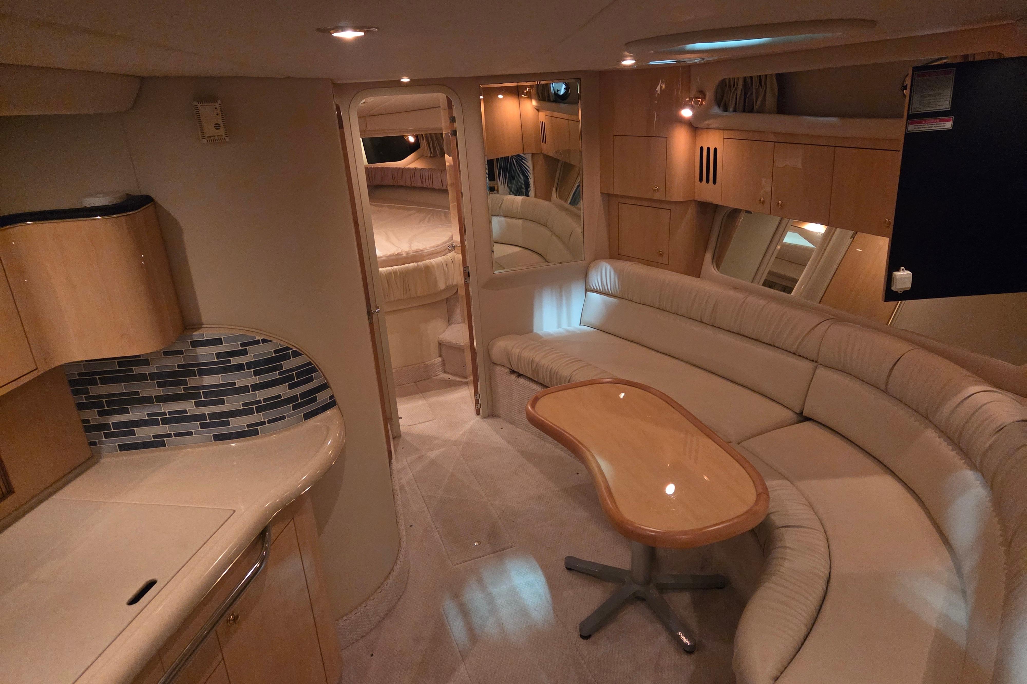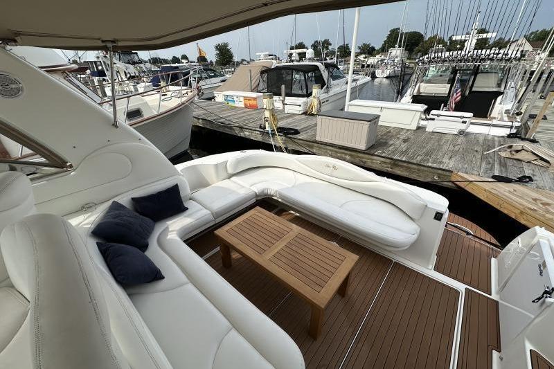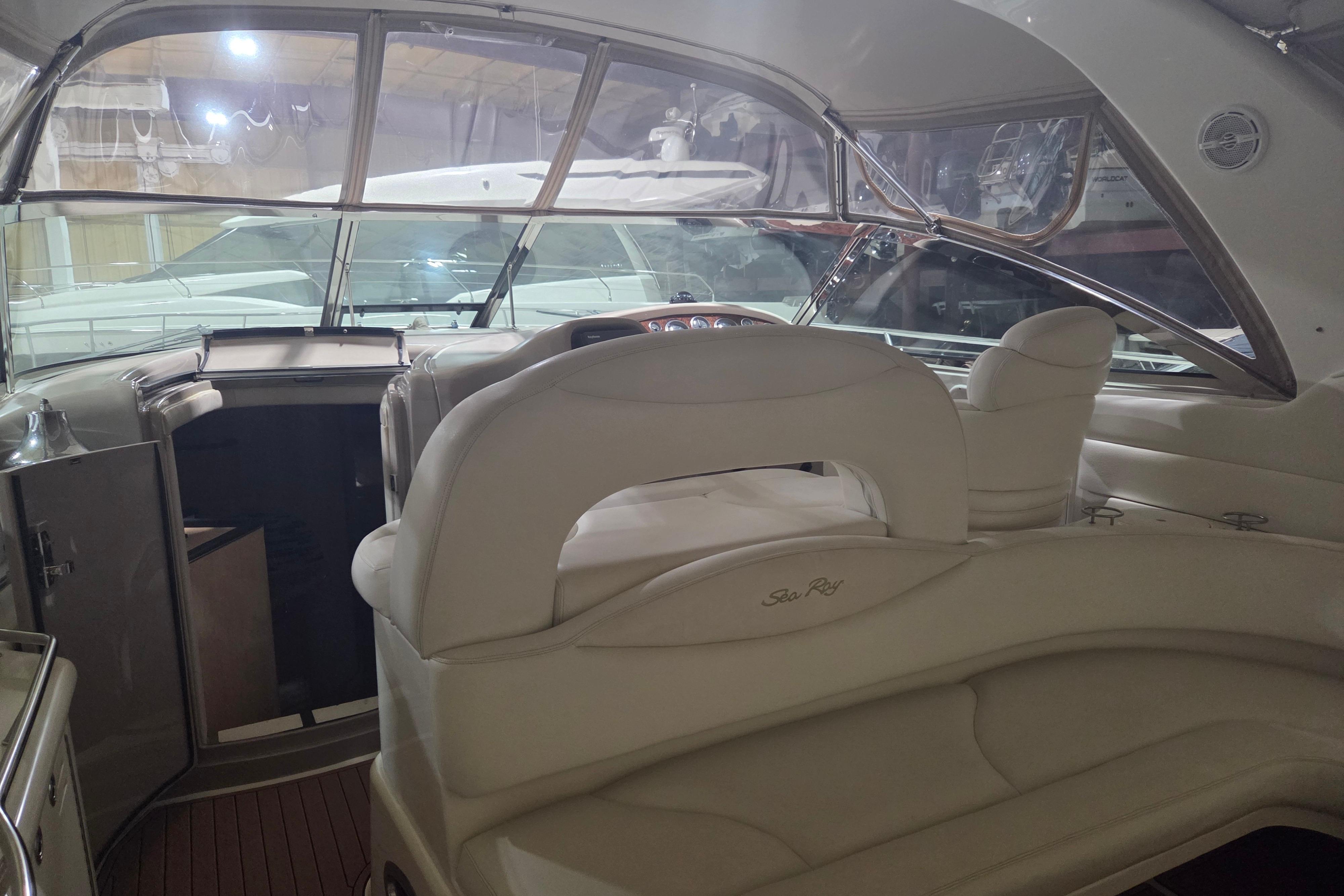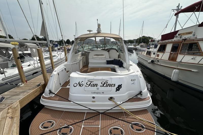 The Sea Ray 410 Sundancer is simply an outstanding yacht with the styling and quality that comes with a Sea Ray. This popular express cruiser is renowned for its sleek design, spacious layout. Her two head – two cabin makes her one of the most sought after Sea Ray boats on the water today. Some notable upgrades include newer cockpit flooring, camper canvas and a full exterior wax. Call now for more information.