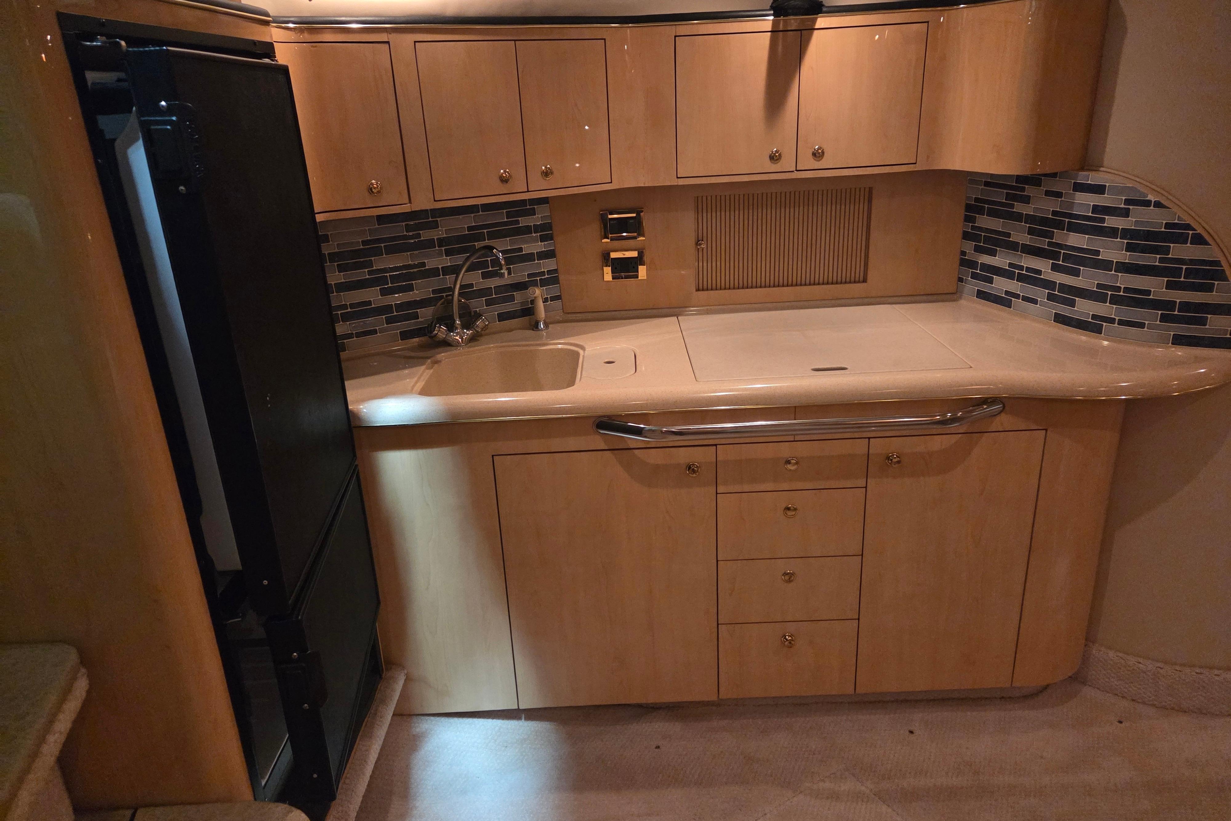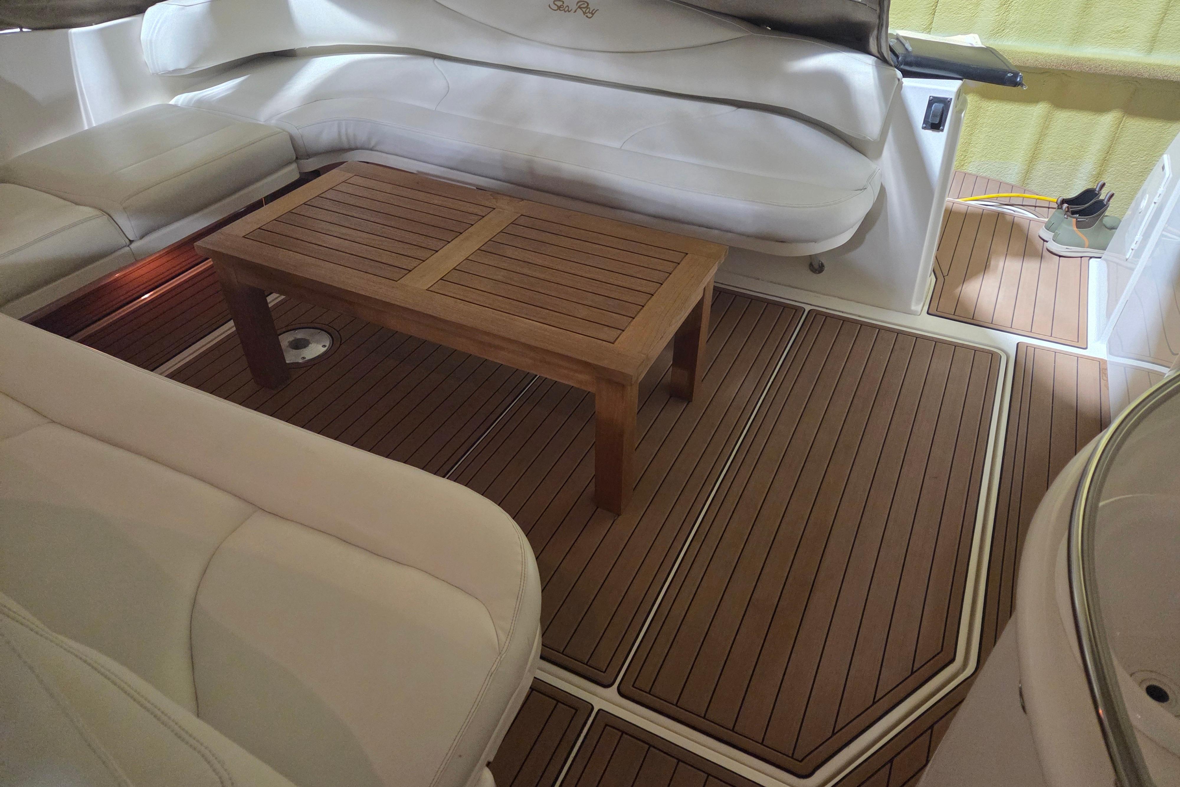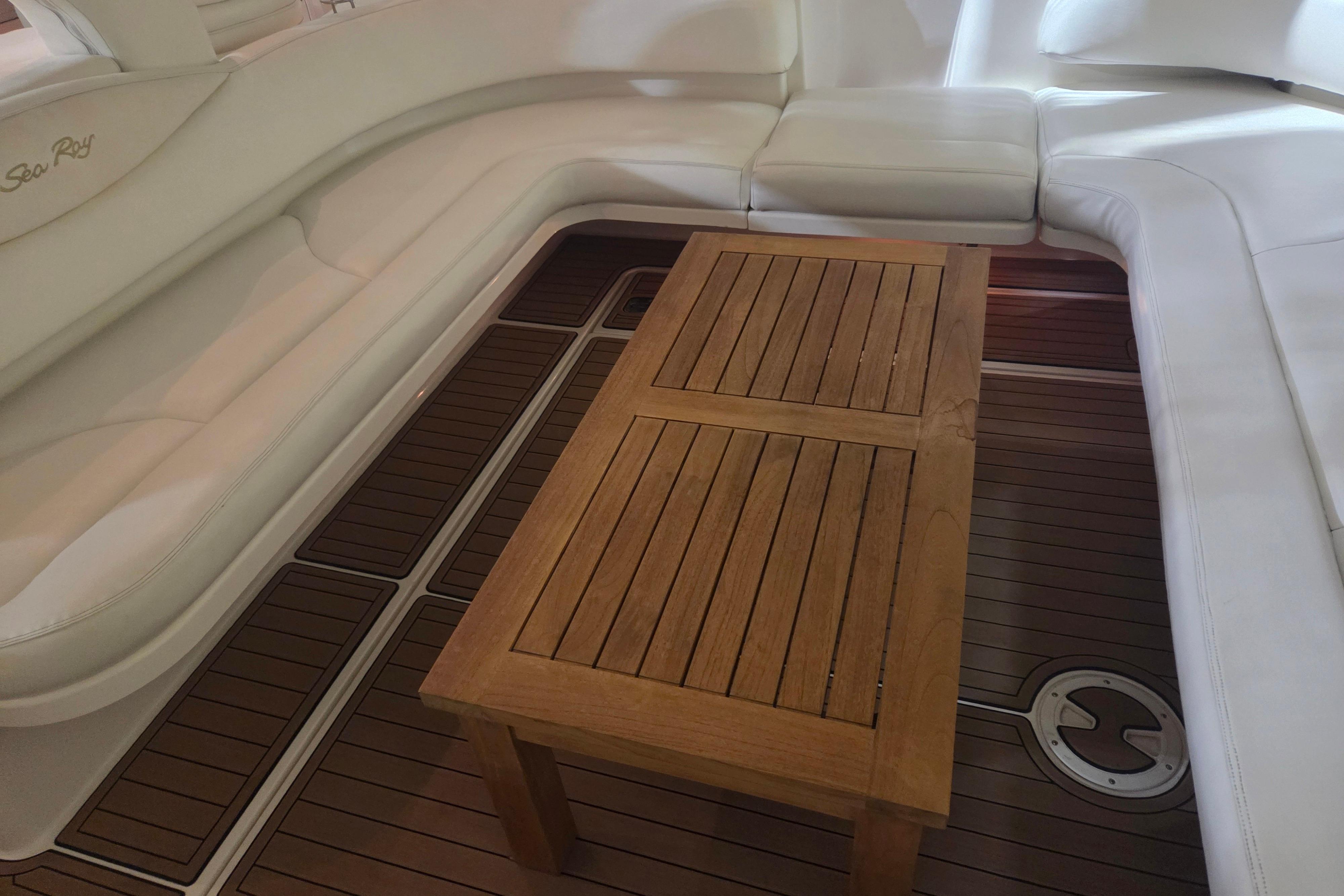The Sea Ray 410 Sundancer is simply an outstanding yacht with the styling and quality that comes with a Sea Ray. This popular express cruiser is renowned for its sleek design, spacious layout. Her two head – two cabin makes her one of the most sought after Sea Ray boats on the water today. Some notable upgrades include newer cockpit flooring, camper canvas and a full exterior wax. Call now for more information.