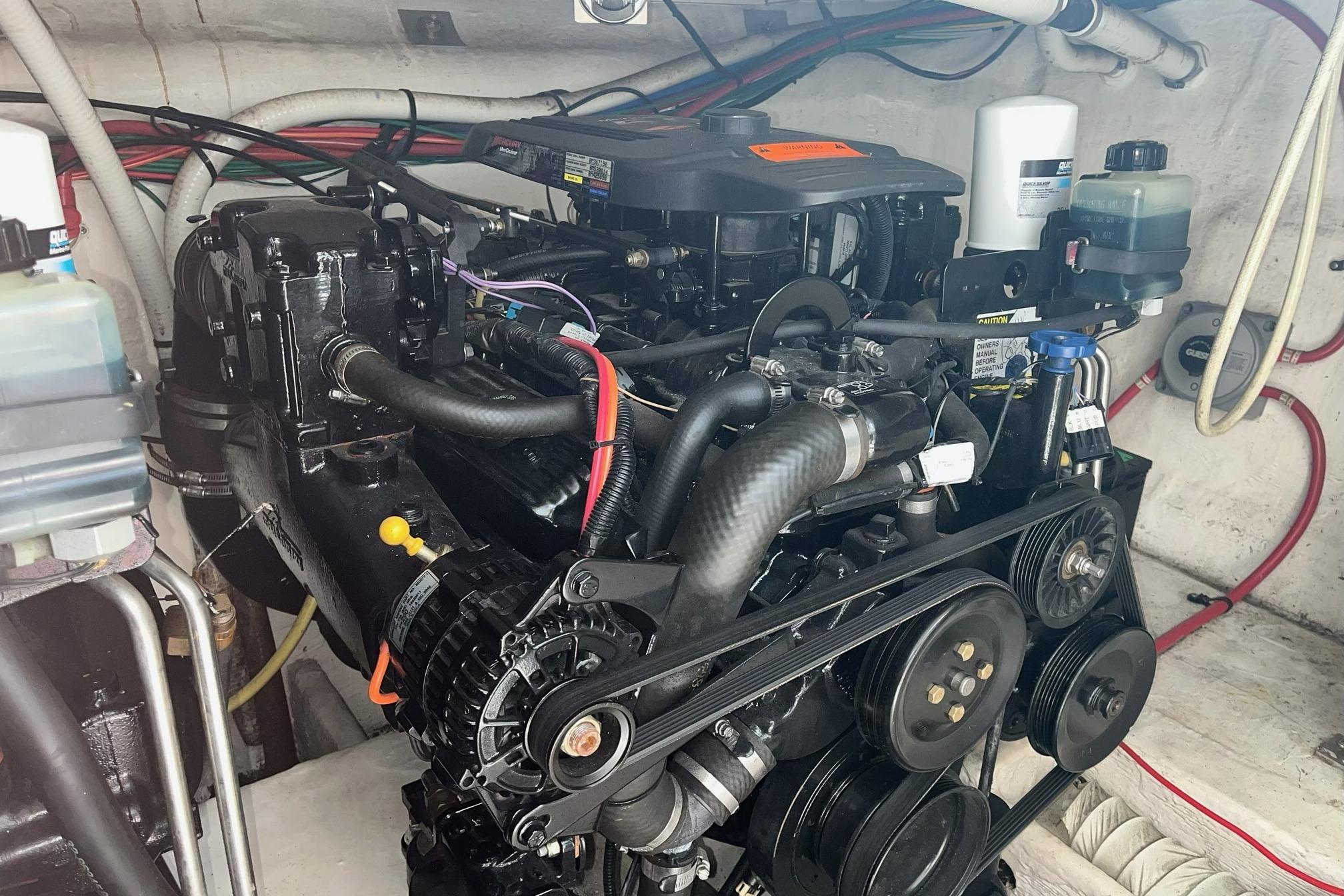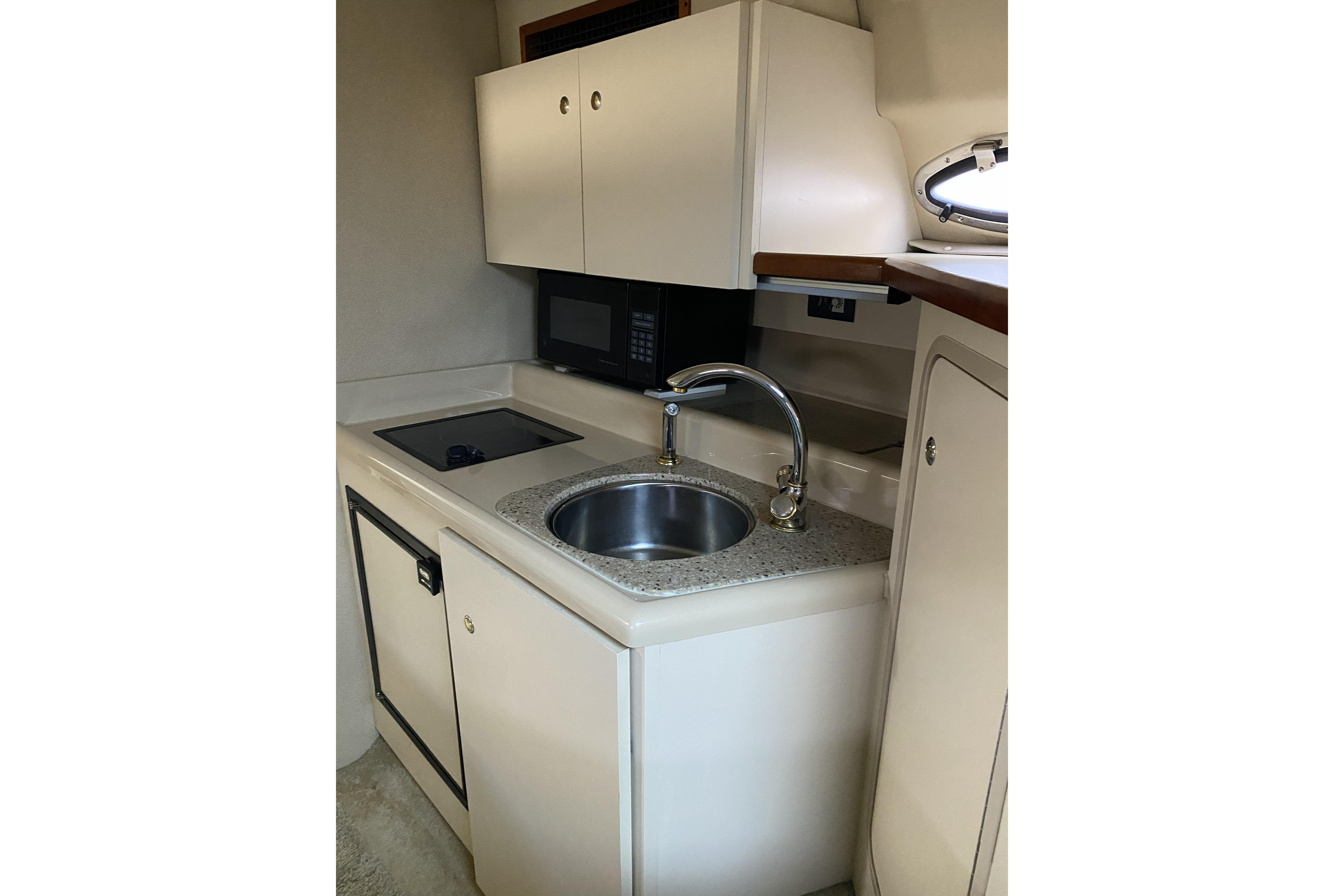 This Freshwater low hour Cruisers 2870 Express offers excellent handling and sleek, contemporary styling, while providing open interior layout including a well-appointed galley with refrigerator and electric stove, a crescent-shaped dinette / double berth, and a double berth forward with a privacy curtain. The 2870 can also comfortably accommodate overnight guests or additional family members with a fixed double berth, located aft to port of the companionway, and a privacy curtain. Additionally, the large head features full standing headroom and a shower. The on-deck layout includes a double-wide helm seat, fore-and aft-facing cockpit settees, and a walk-through windshield with molded-in steps for easy foredeck access. To keep onboard guests comfortable and out of the elements, there is also a custom-fit full enclosure. She also has a new Rockford Fosgate stereo system with Bluetooth/Sirius upgrades.