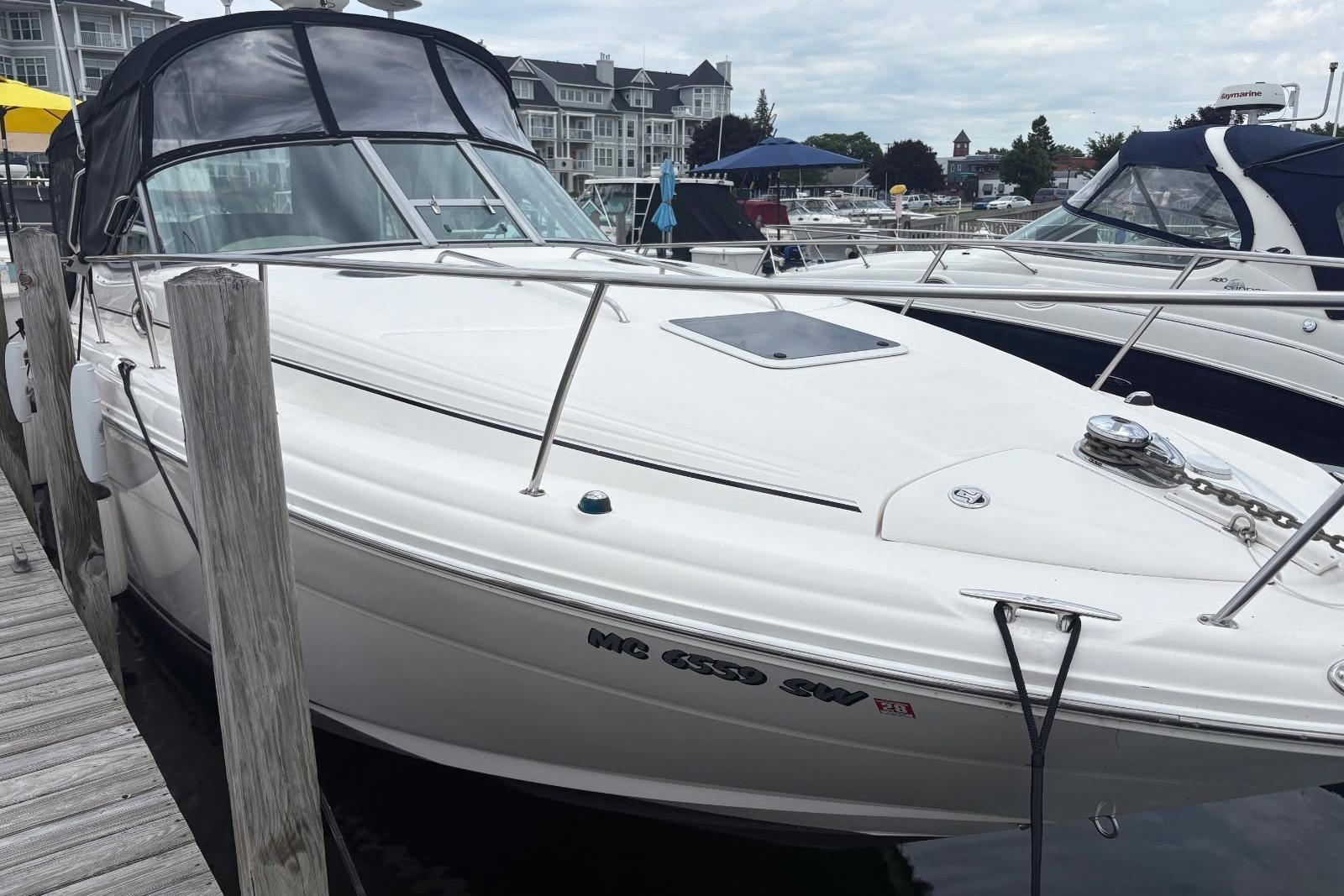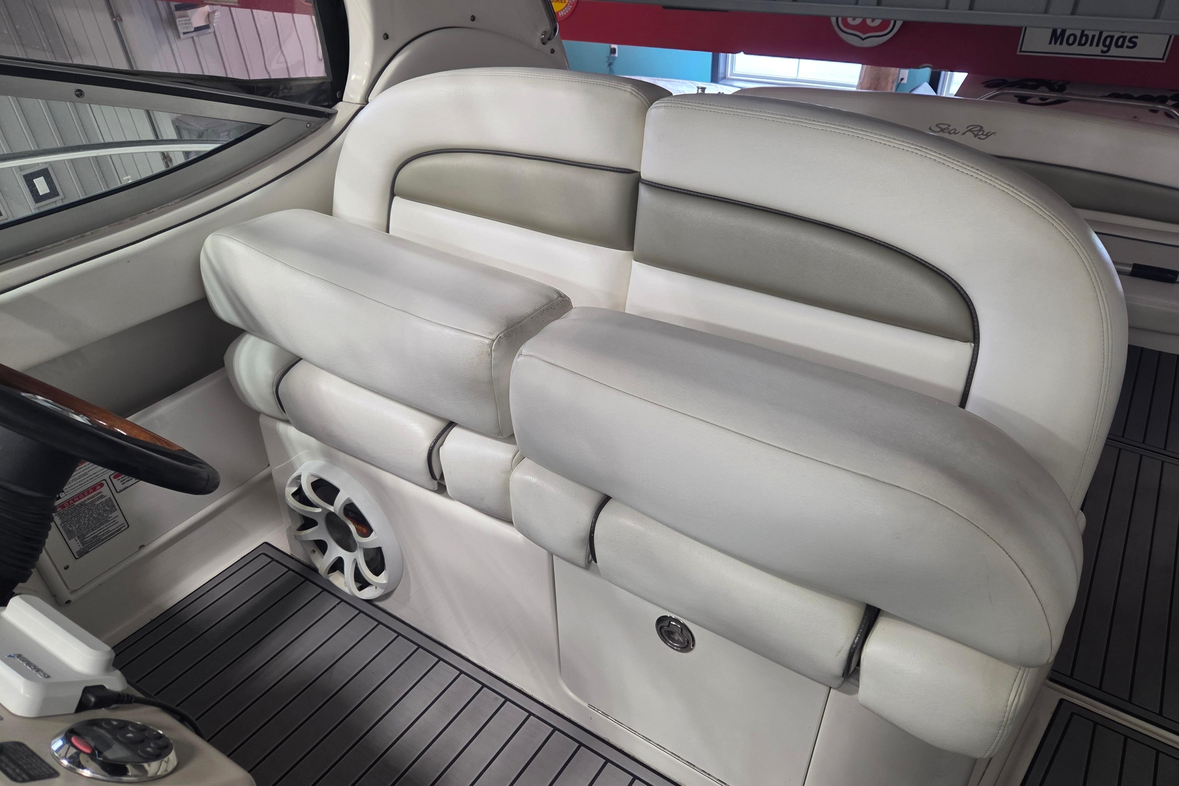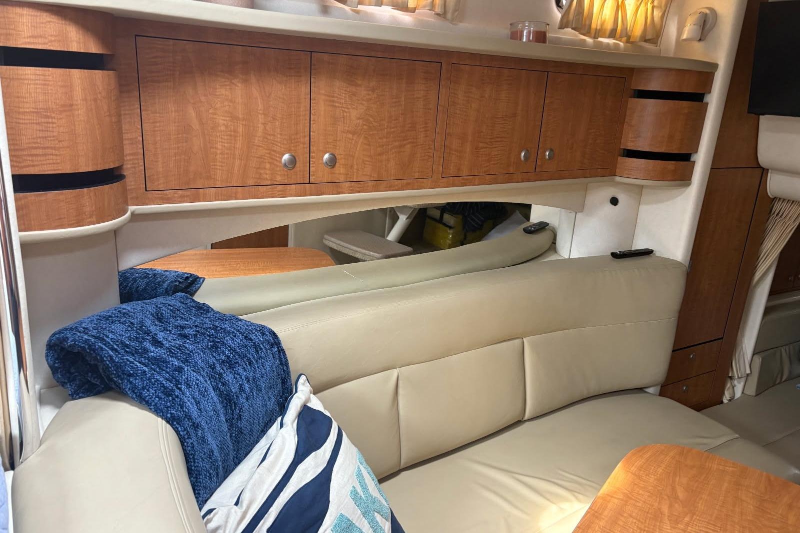 This Freshwater Sea Ray 300 DA has been well maintained and it show once you step on board. Some notable features are New SeaDek cockpit flooring, newer canvas, new flat screen TV plus a flip down TV in the mid cabin both with dvd players, air/ heat, upgraded stereo system with amps and subs, cockpit, custom bedding, cockpit frig, electric windlass plus much more. The elegant curves and graceful style of this classic 300 Sundancer is guaranteed to capture attention. Come onboard and you’ll see how the luxuriously appointed deck and wide open cabin of this handcrafted boat will make cruising more comfortable than you ever imagined. Call now with questions.