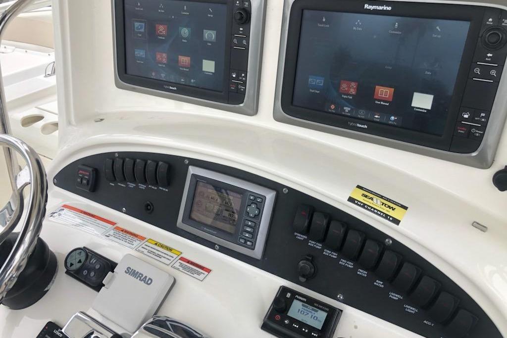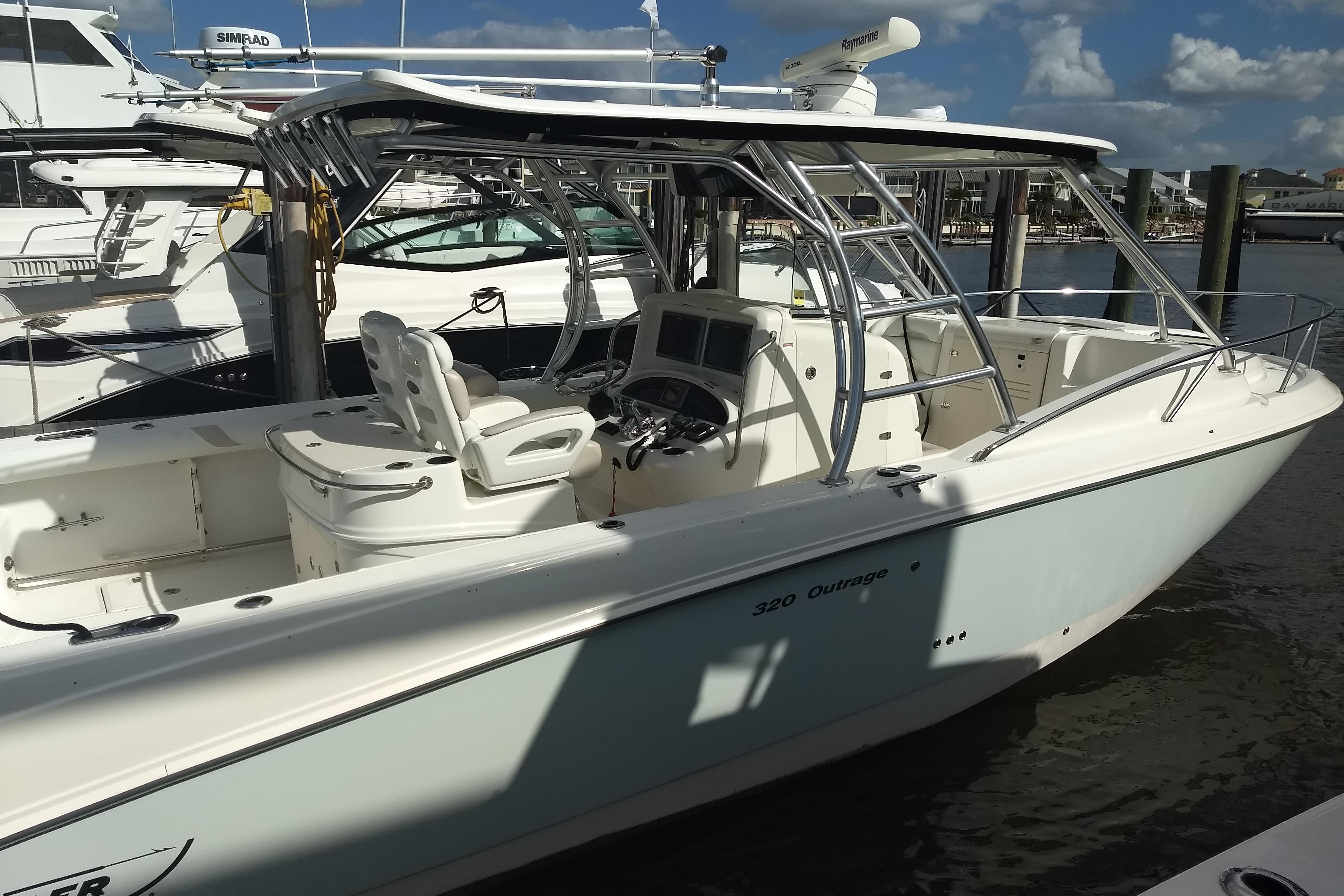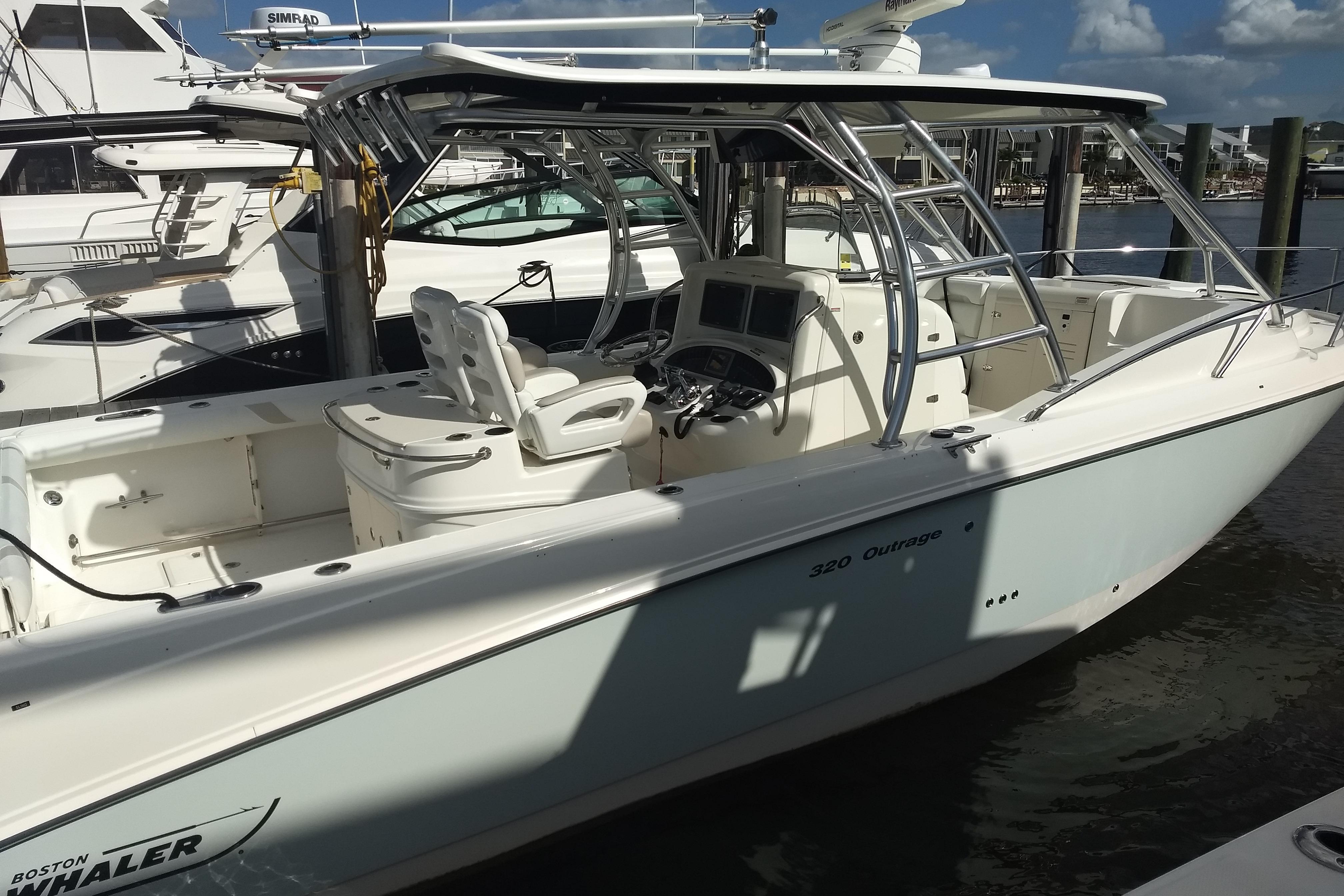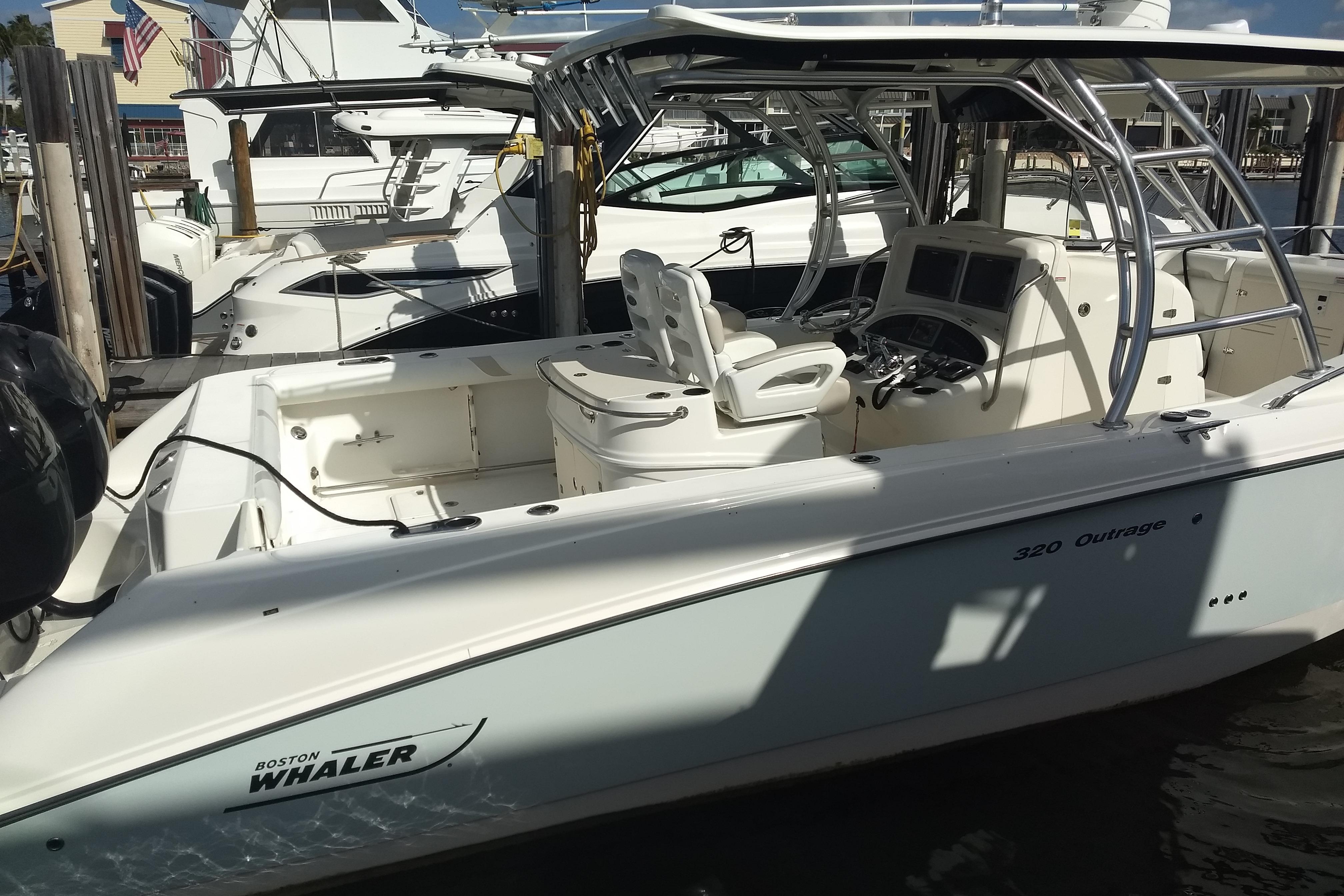 Introducing the 2009 Boston Whaler 320 Outrage Cuddy Cabin, a remarkable saltwater fishing vessel with an overall length of 32.17 feet. This used boat features a robust fiberglass hull designed in a Deep Vee shape, ensuring excellent stability and performance on the water. Powered by twin Mercury Verado FourStroke outboard engines, each delivering an impressive 300 horsepower, this boat is ready for thrilling adventures with a total of 600 horsepower. With a seating capacity for up to 14 people, it’s perfect for family outings or fishing trips with friends. The thoughtful design includes ample space for gear and equipment, making it a versatile choice for both leisure and sport. The boat’s joystick control enhances maneuverability, ensuring a smooth and enjoyable experience. Whether you’re cruising or casting lines, the Boston Whaler 320 Outrage Cuddy Cabin promises to deliver unforgettable moments on the water.