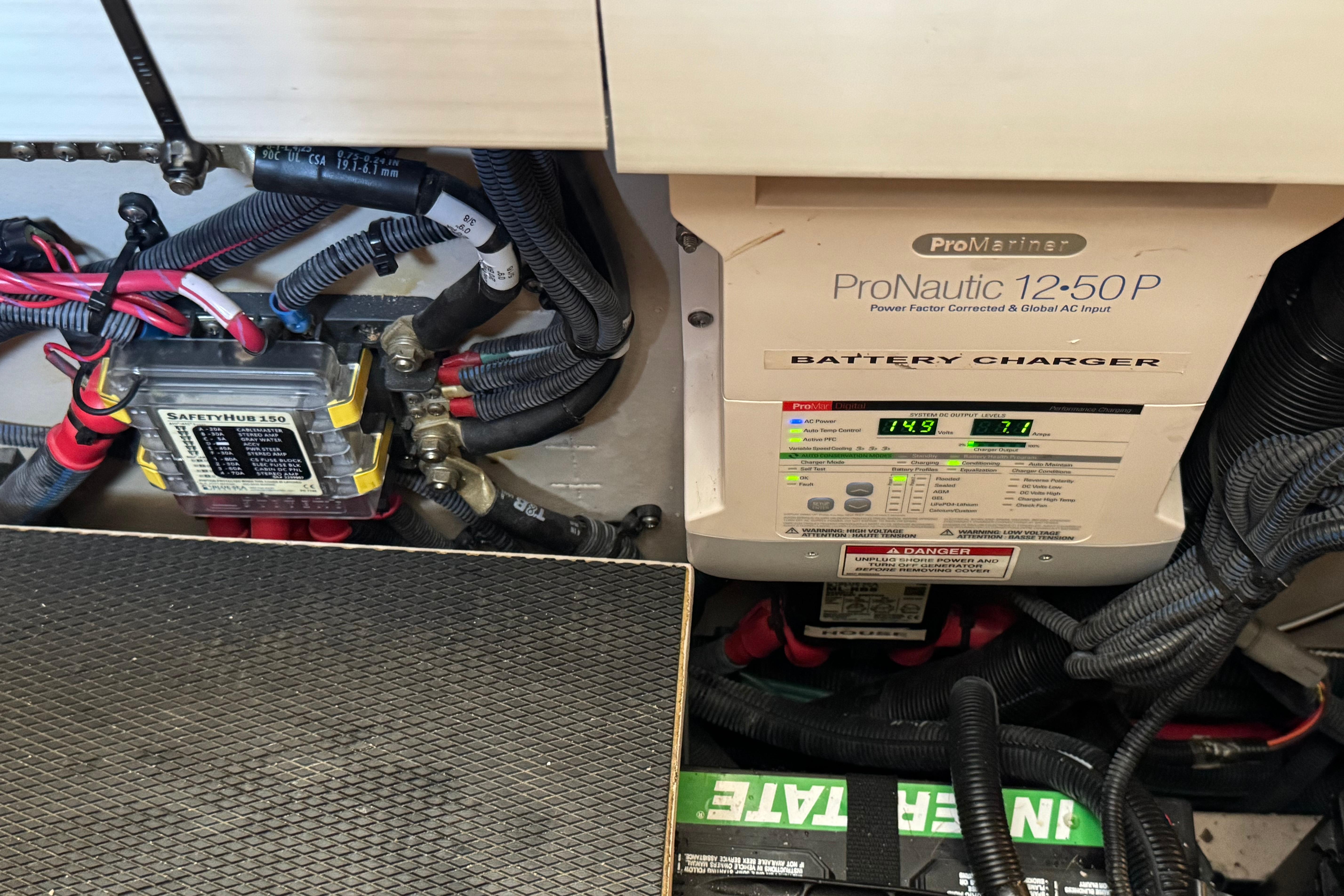 Powered by Cummins V-drives with Vessel View monitoring, she’s equipped with a new Sleipner bow thruster (Dec. 2024), new Raymarine display (2024), autopilot, and full Raymarine electronics suite including radar and VHF.