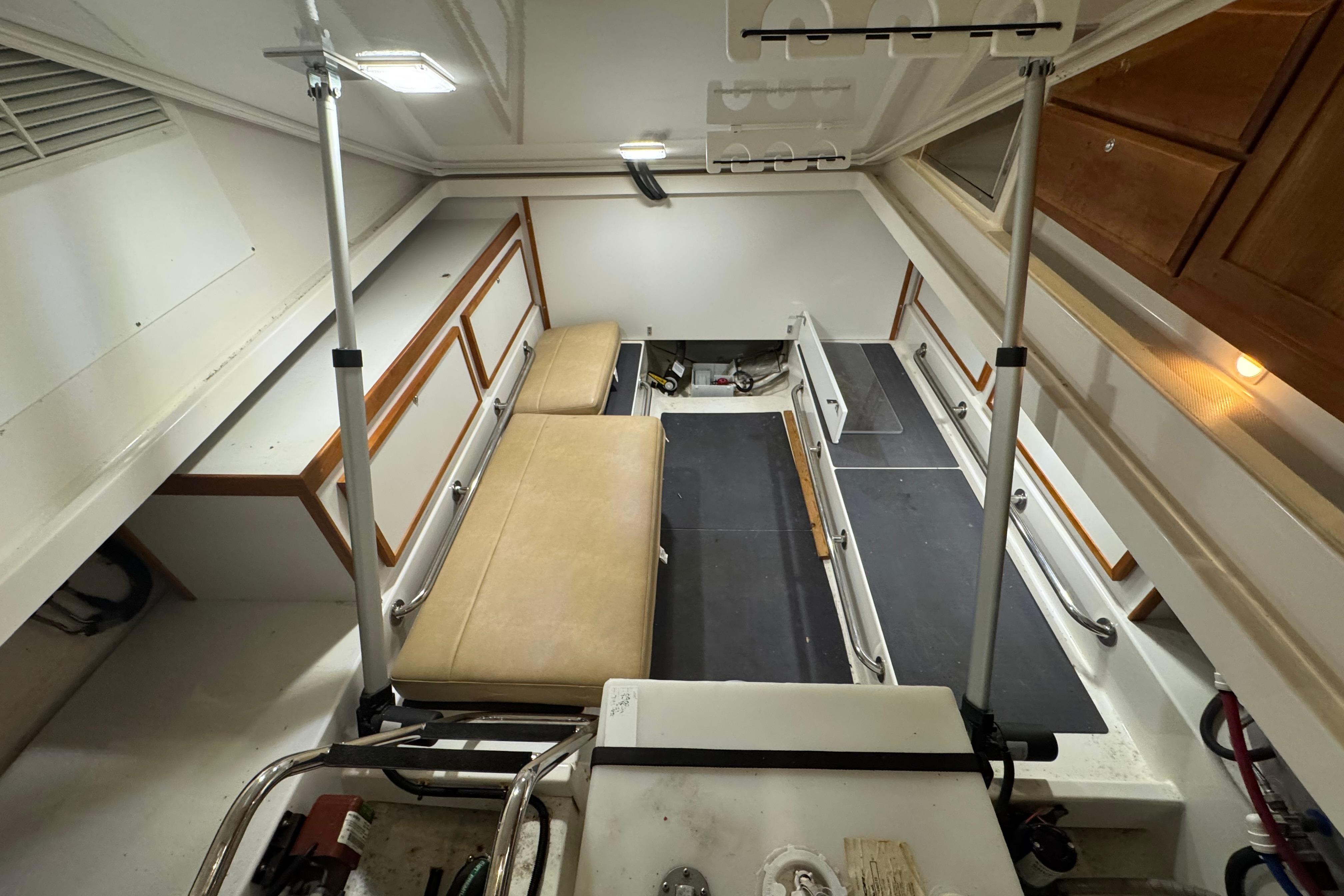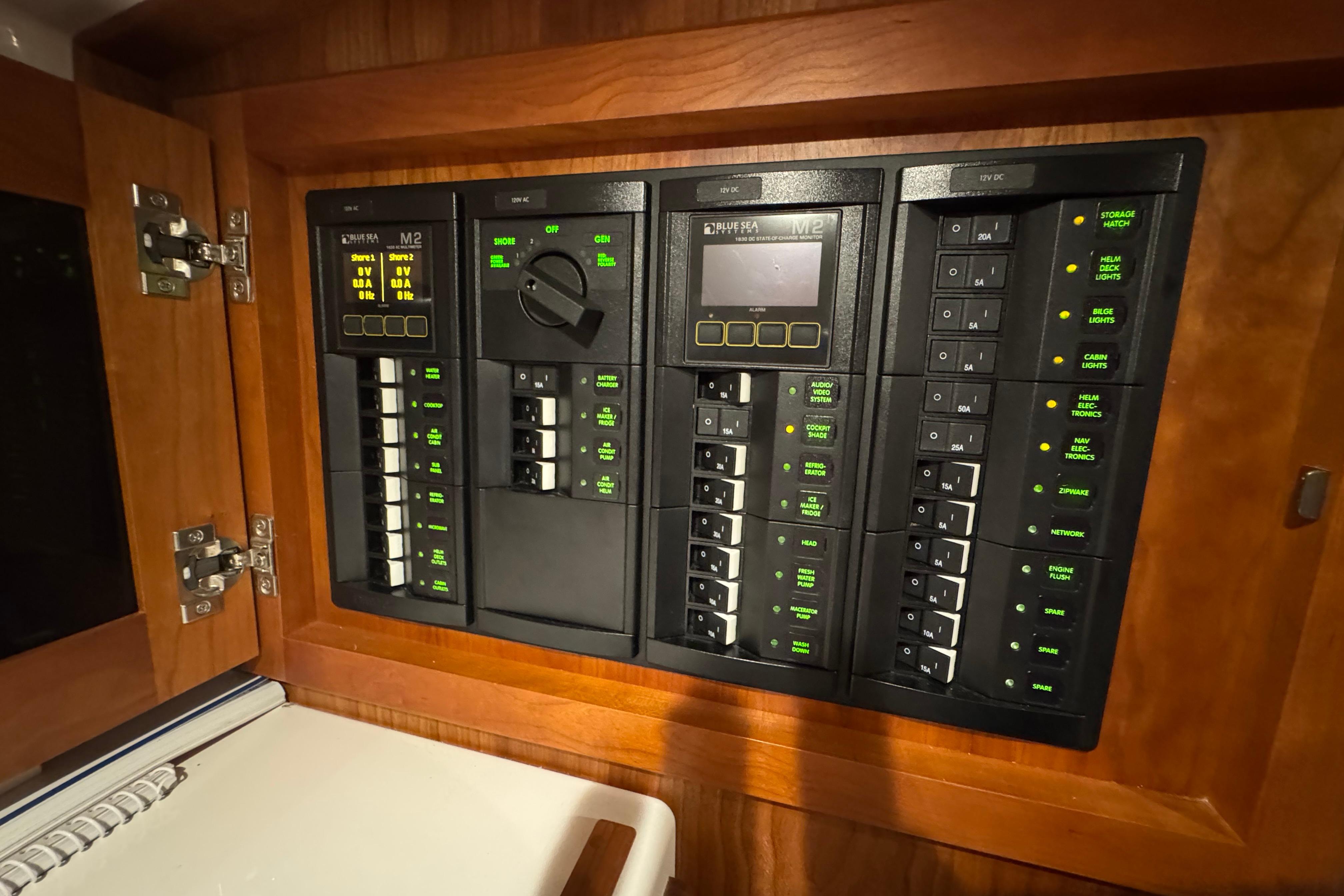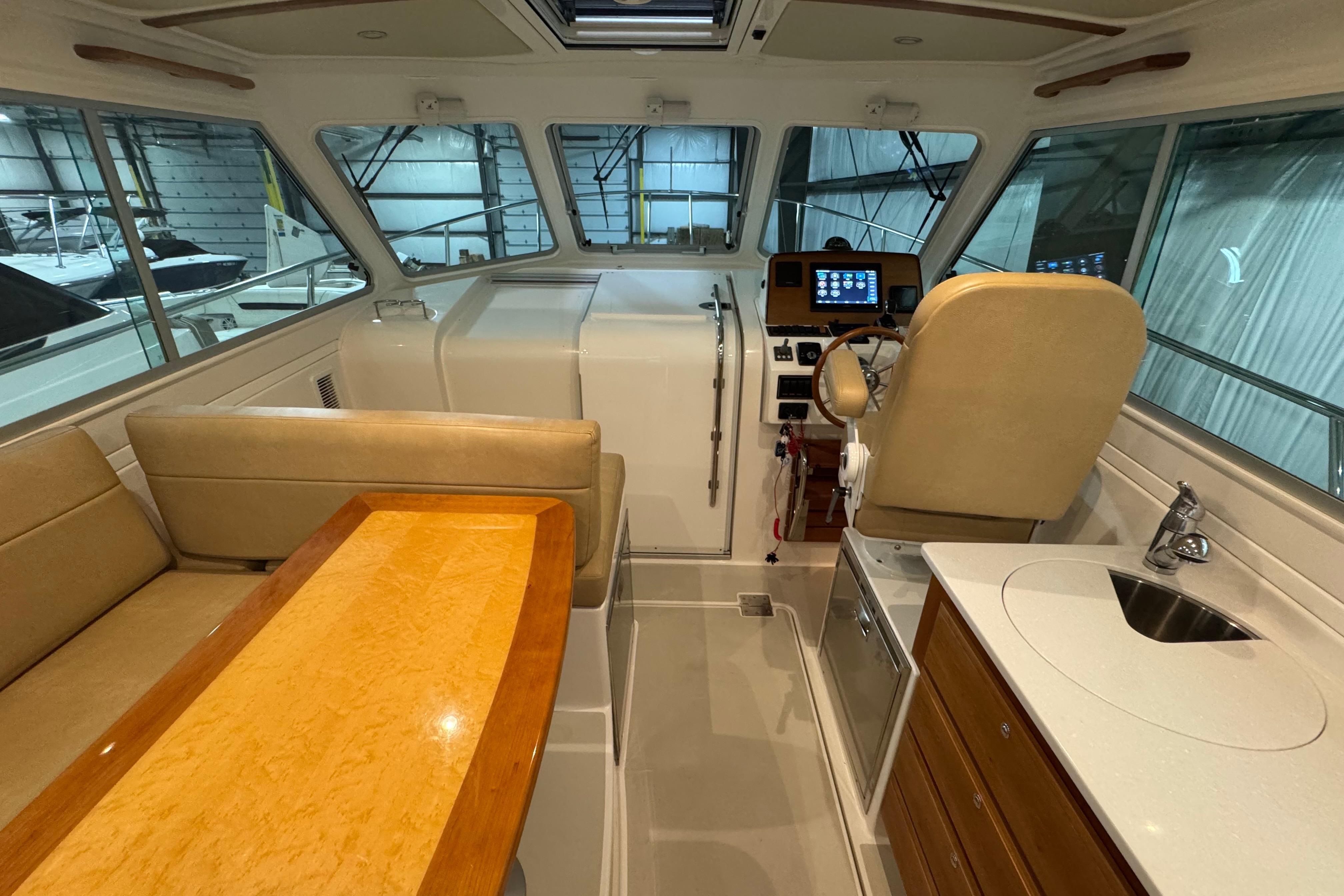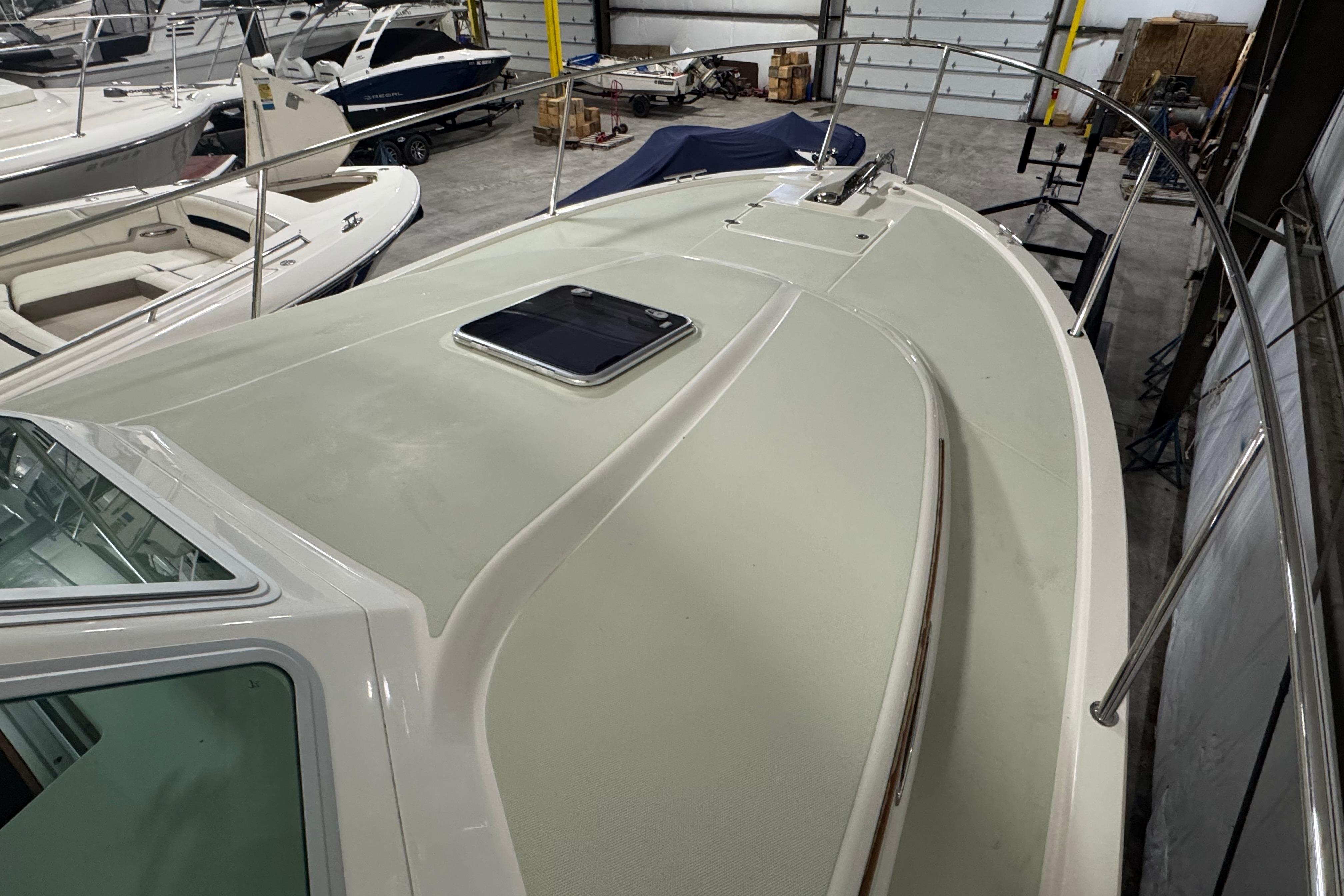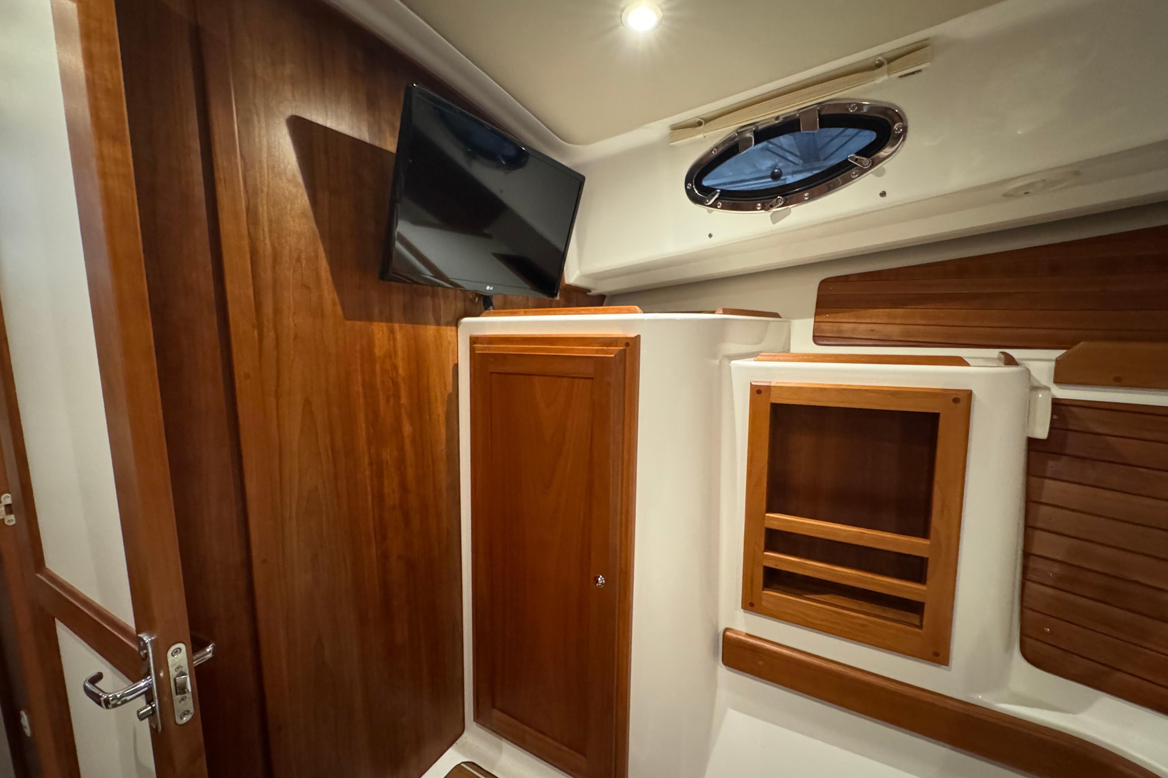 This beautiful Back Cove 34O was delivered new in March 2021 and began her journey north on her own bottom, arriving in Cheboygan by fall of that year. Since then, she has been used sparingly in freshwater only and always stored inside a heated building during the winter months. Stored and serviced profesionally always at Walstrom Marine. The result is a boat that shows beautifully, with low hours and the meticulous care you’d expect from a Great Lakes vessel.