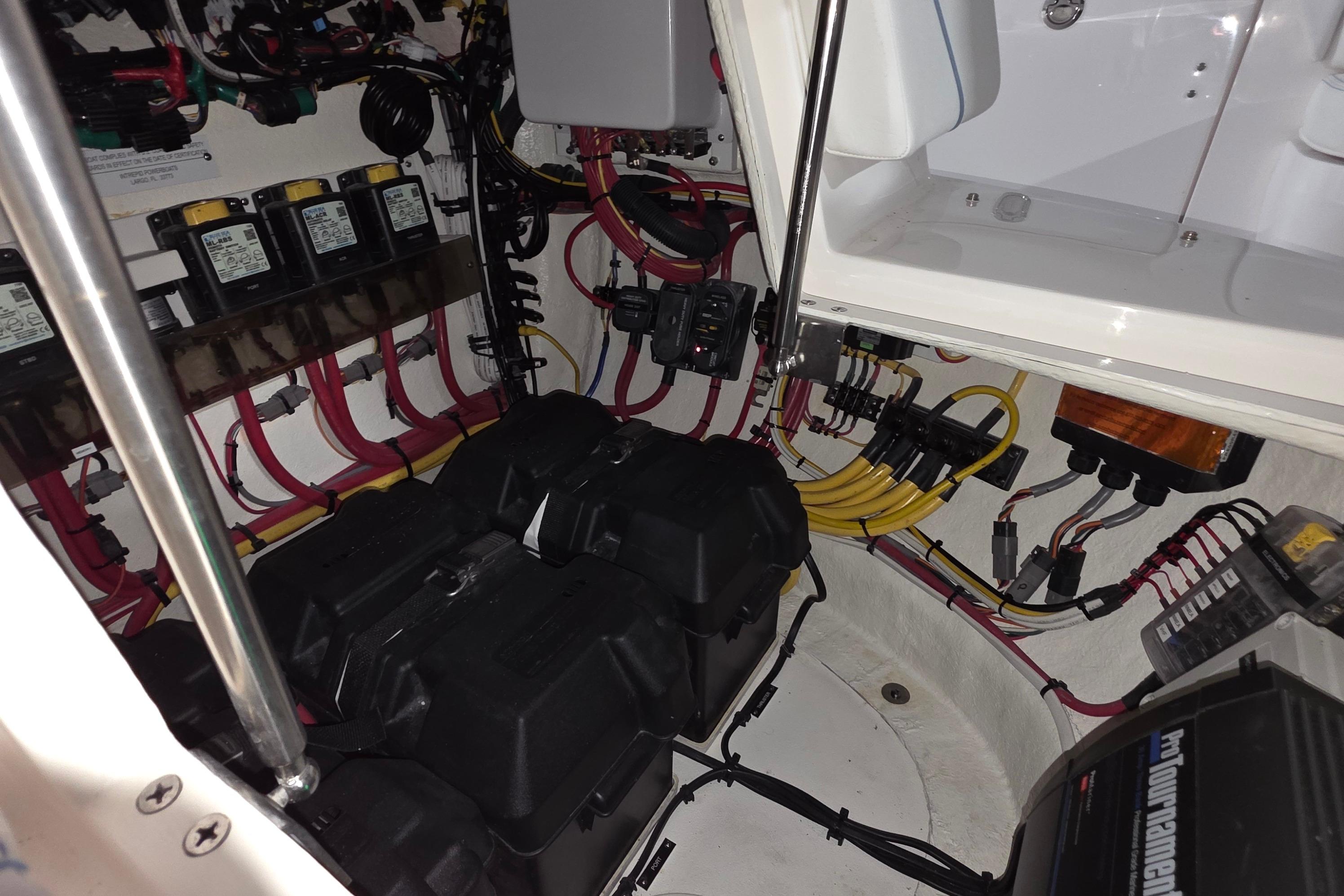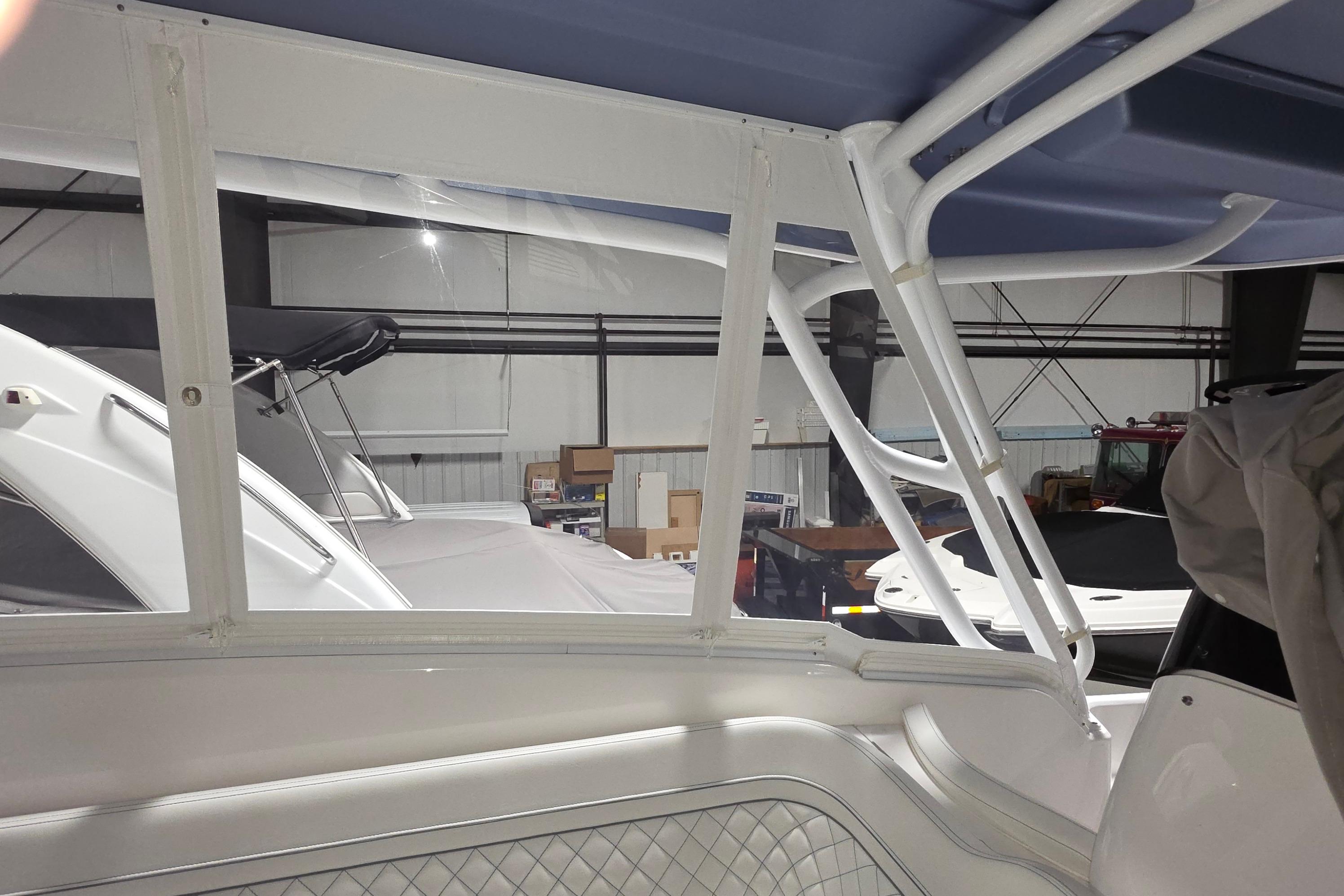 Step below and you’ll discover a roomy, two-berth cabin with natural light pouring through large hullside windows and skylights. There’s also a well-appointed galley, private head with built-in shower, and premier European cabinetry, hardware and styling throughout. In fact, this 345 Valor includes such a wealth of standard luxury upgrades, you’ll wonder how Intrepid got it all onto a fuel-efficient, 35-foot vessel that represents one their best big-boat values.