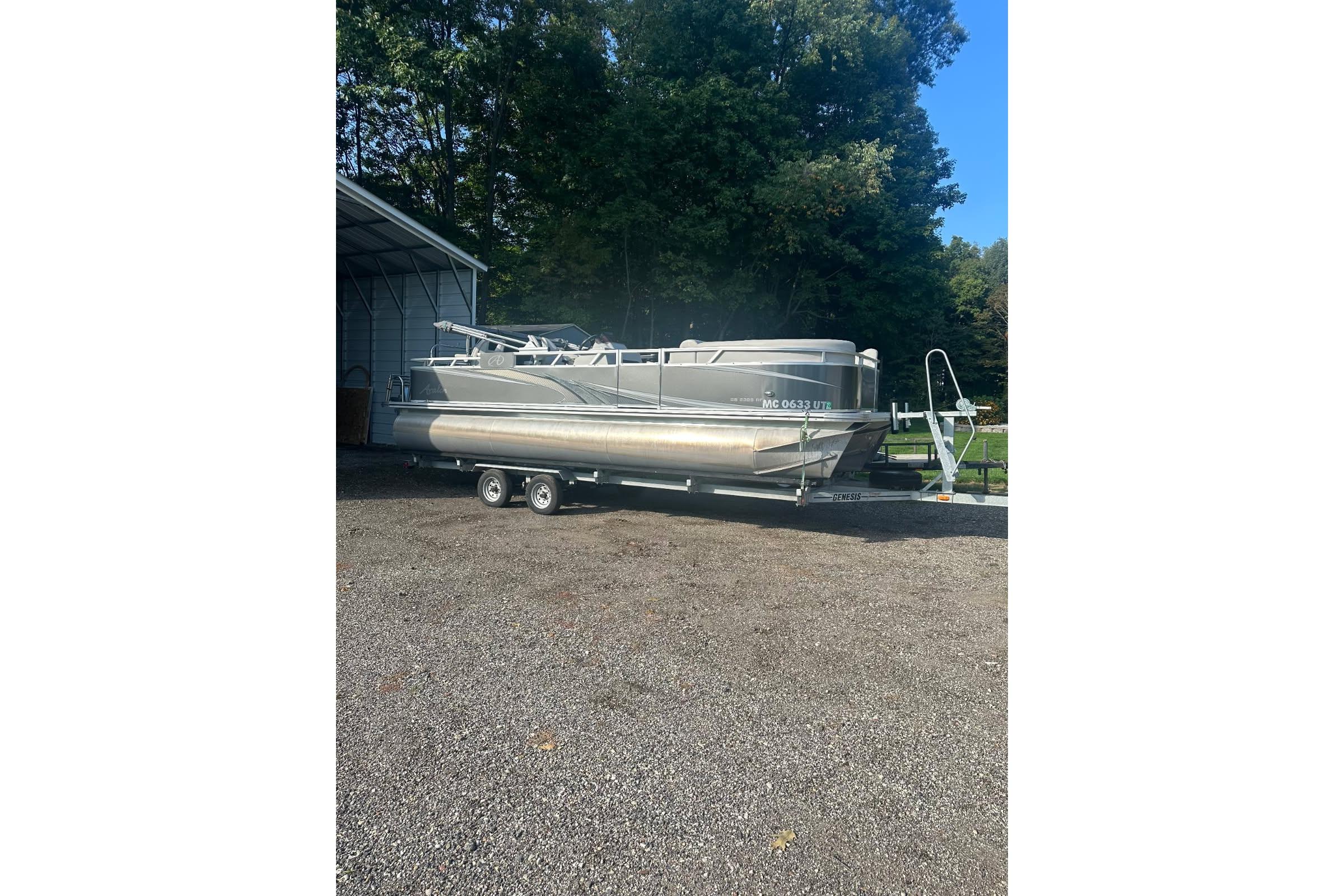 .This one owner Avalon 23-5″ Tritoon is nicely equipped with a 150 HP Honda motor, Trailer, GPS Bimini top, cockpit cover plus much more Call now for more information .