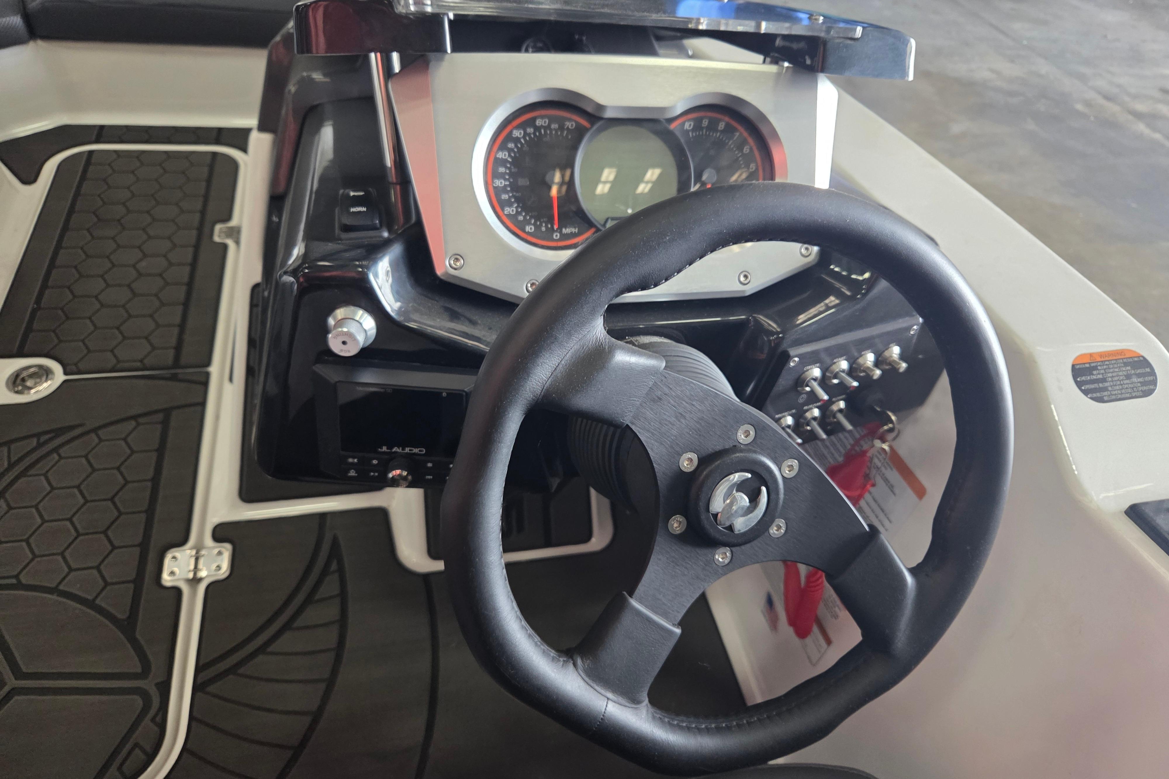 - Instrumentation, helm: fuel level, fuel consumption, tach, GPS speed, hour meter, compass, oil, volt, overheat, check engine