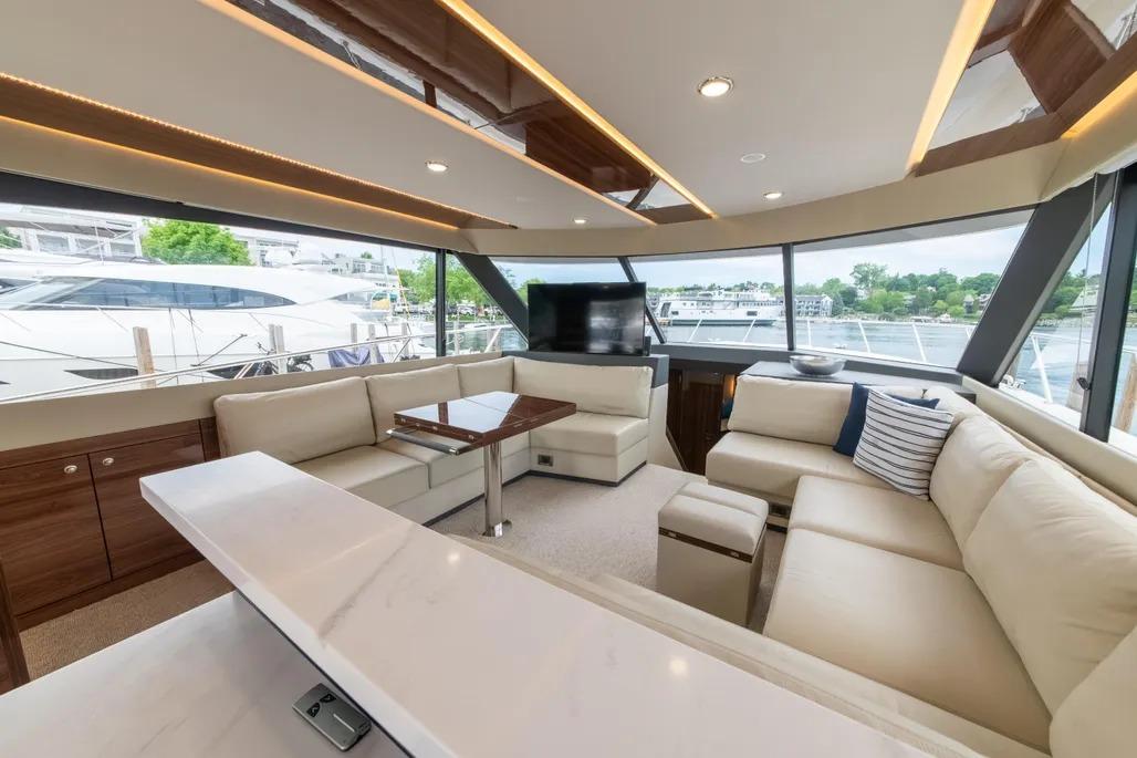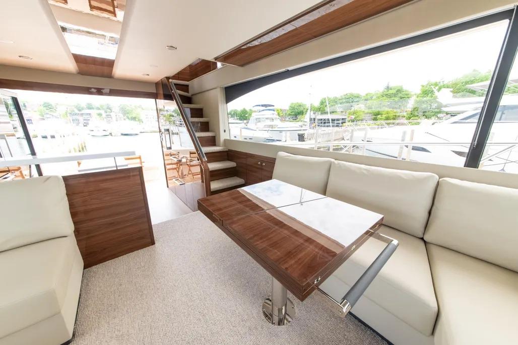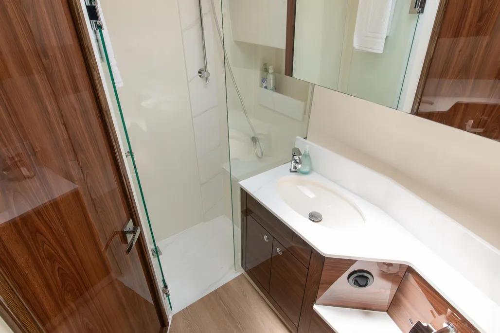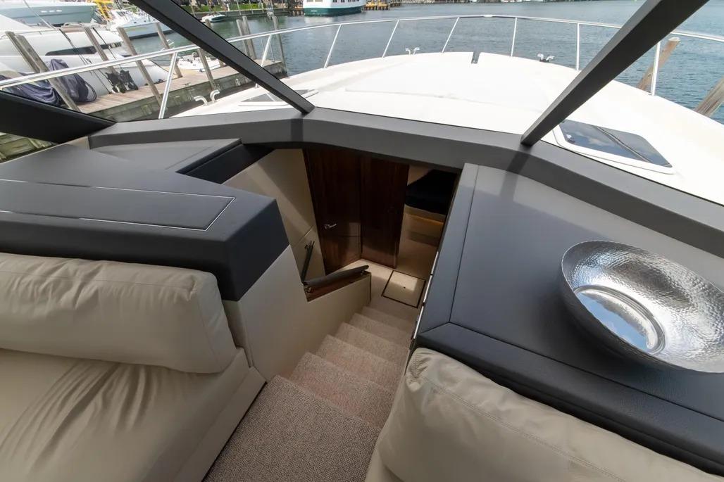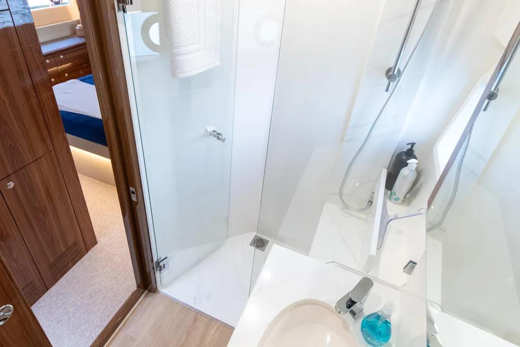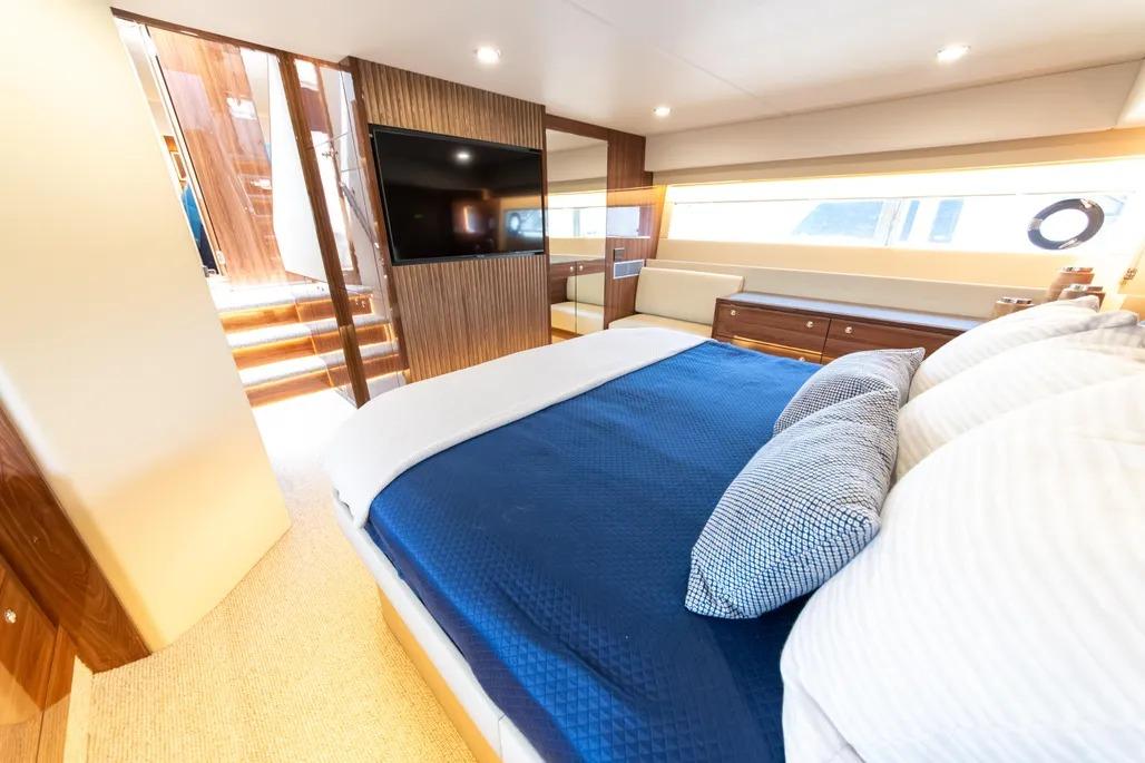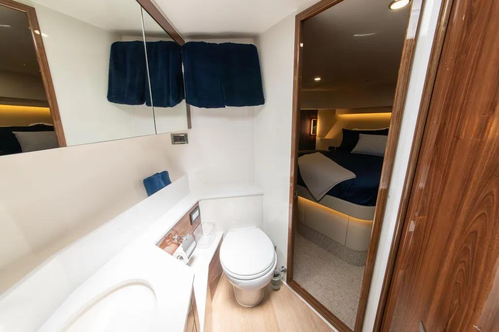 Australian-built for demanding conditions, the M55 reflects Maritimo’s deep experience in blue-water design. The enclosed, climate-controlled flybridge skylounge – accessed via an internal staircase – creates a comfortable, protected space ideal for longer passages while still maintaining excellent visibility and connection to the water. Throughout the yacht, the sense of space, balance, and solid construction is unmistakable, offering a platform that comfortably accommodates family and guests with both safety and refinement.