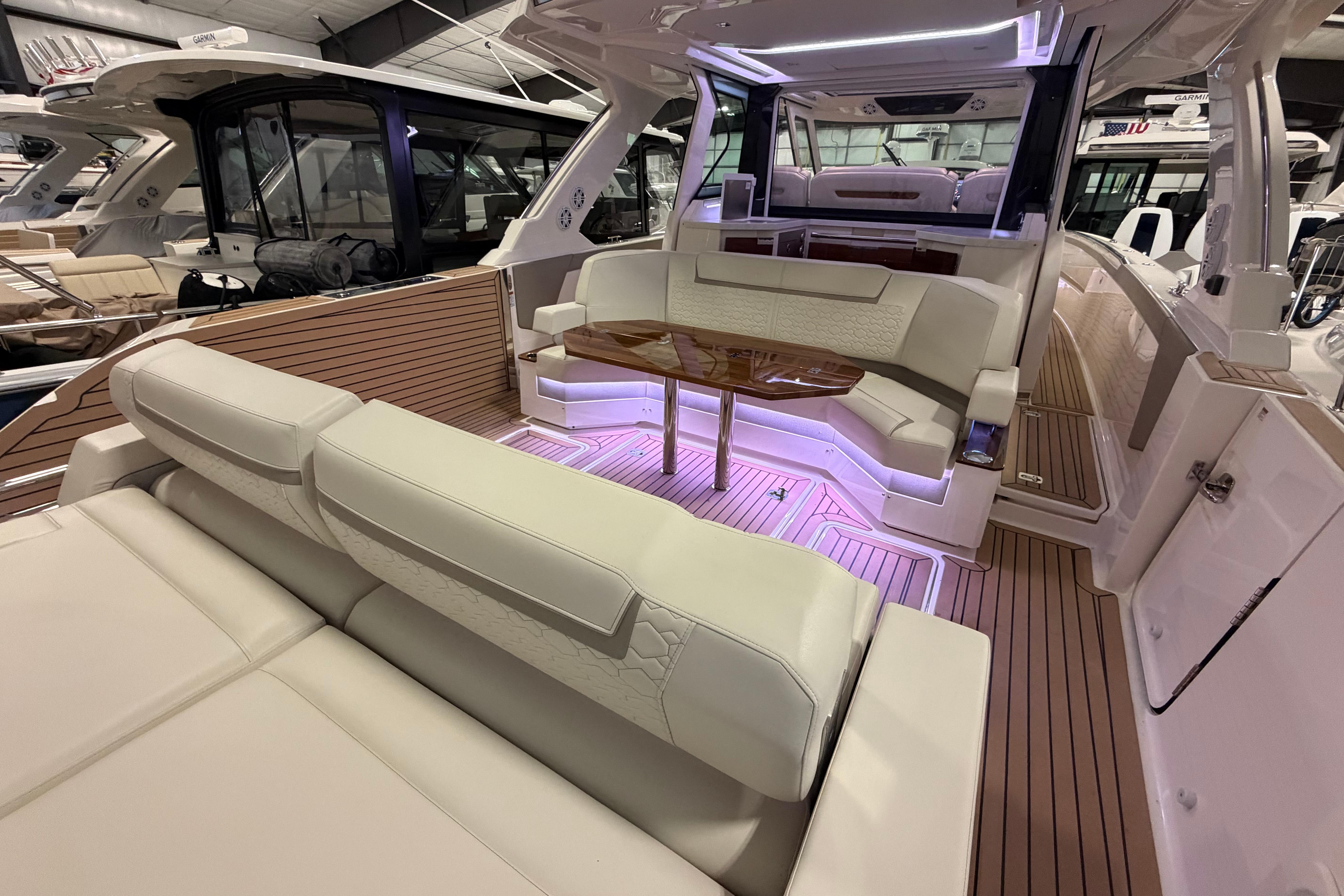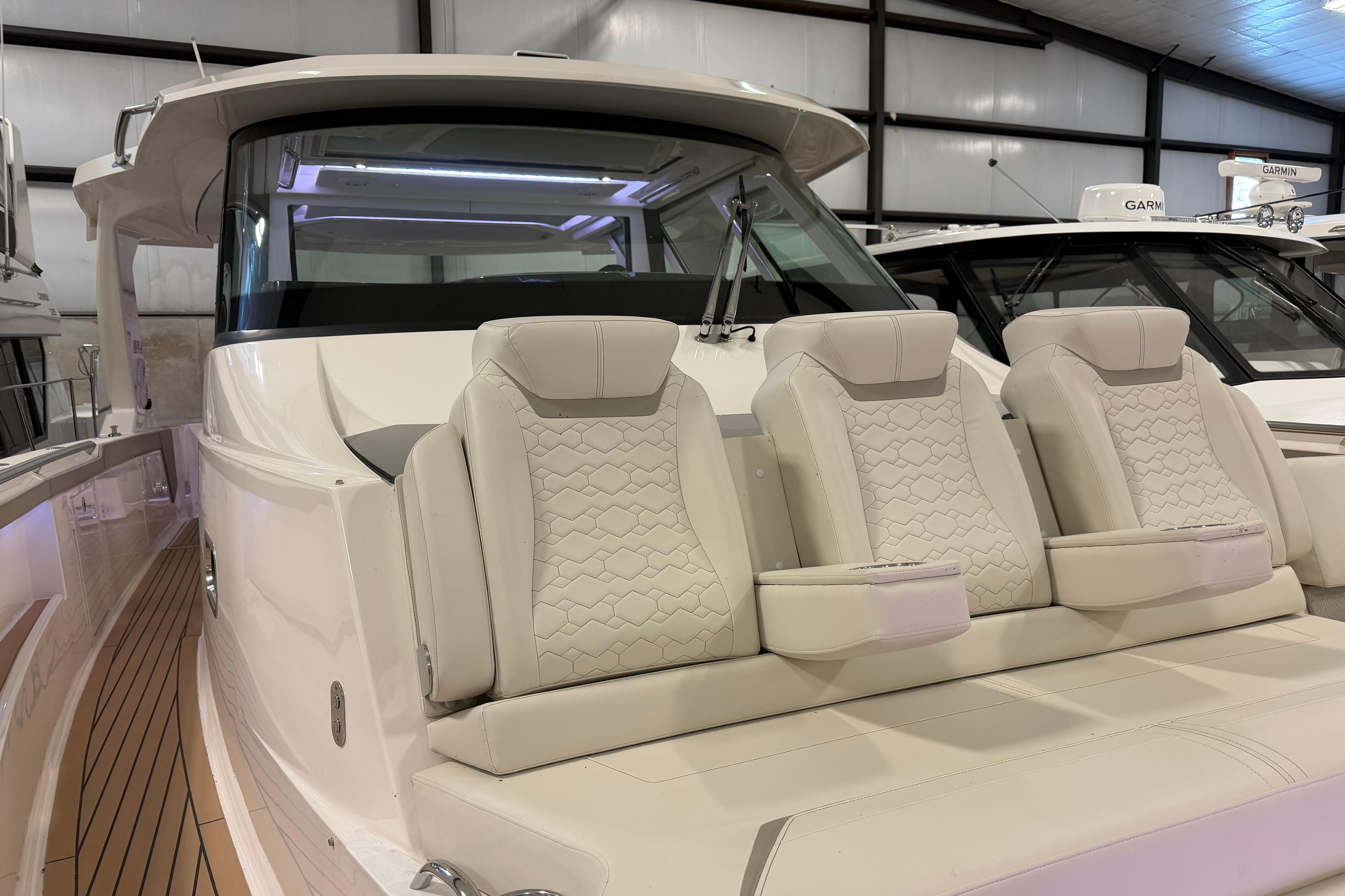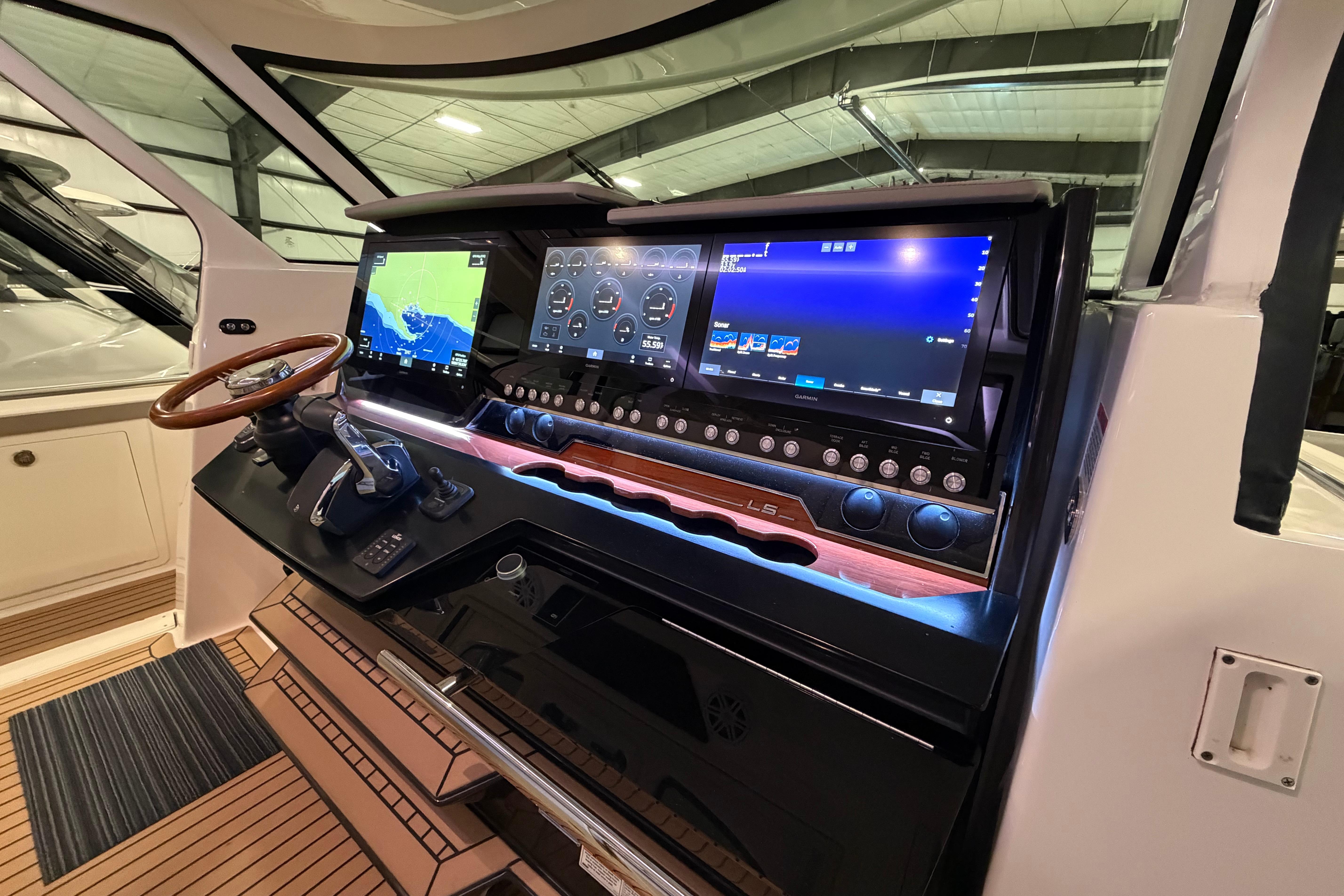 In partnership with mercury, the 48 LS boasts the Verado® V12 600hp engines. With the unwavering strength of a V12 powerhead, sophisticated sound-dampening technology and innovative advancements in steering and control, the 600hp Verado® engine delivers the ultimate outboard-driving experience. Triple V12’s offer control and performance, combined with the Tiara Yachts integrated electronics package including Garmin marine navigation.