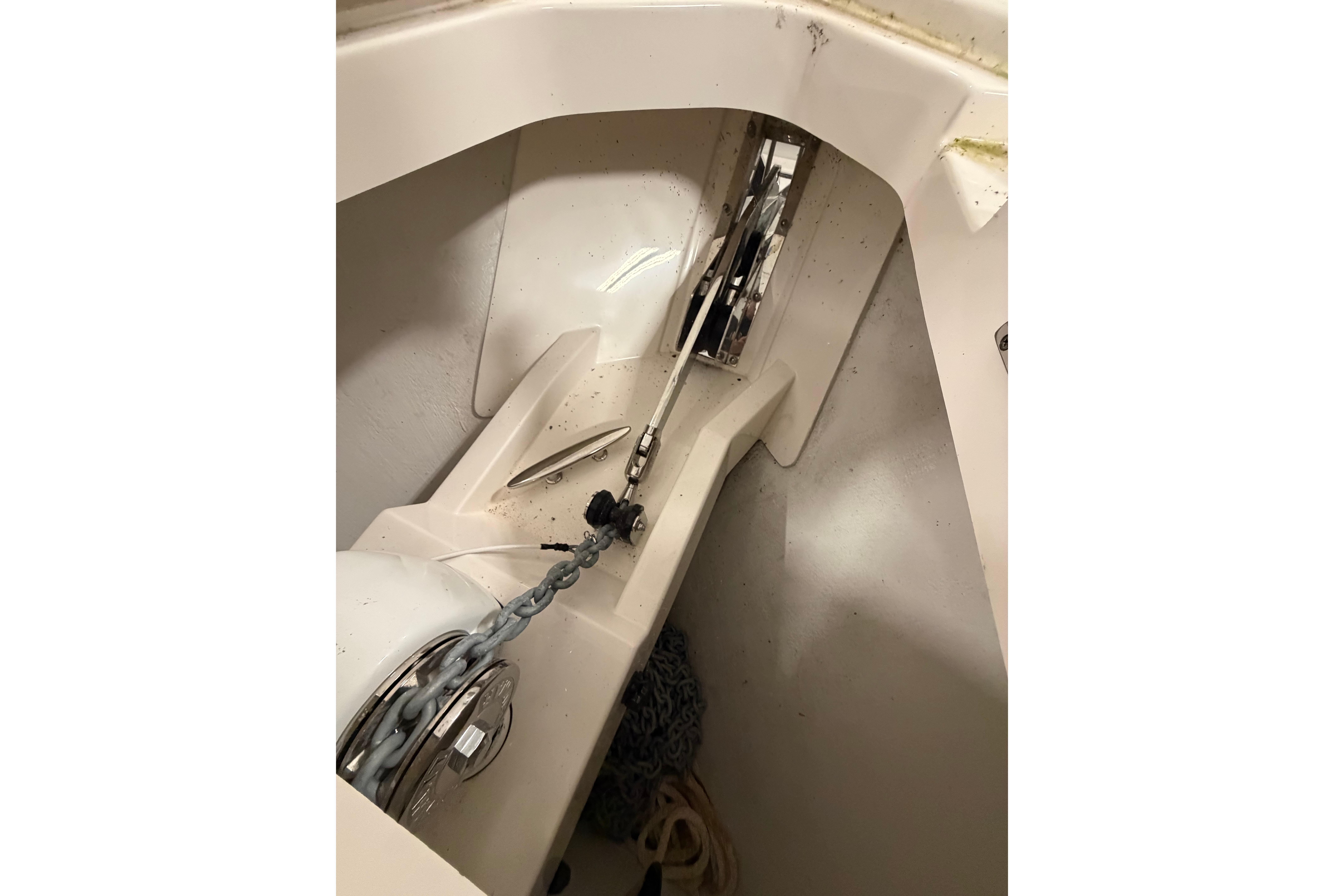 Ferrari Tour de France Blue with  Axalta Crystal White Boot Stripe, Two Tone Engine Paint, Upgraded Whitewater Beige Exterior Upholstery, Platinum Synthetic Teak.  Garmin Fantom 54 Radar, Seakeeeper SK6 Gyro Stabilizer, All Chain Windlass, Icemaker, Hardtop Spotlight,  Head Macerator System, Oil Changer for Generator, Raw Water Washdown, Sirius XM Radio & Weather Ready, Electric Fold Down Antenna, and Teak Steering Wheel.