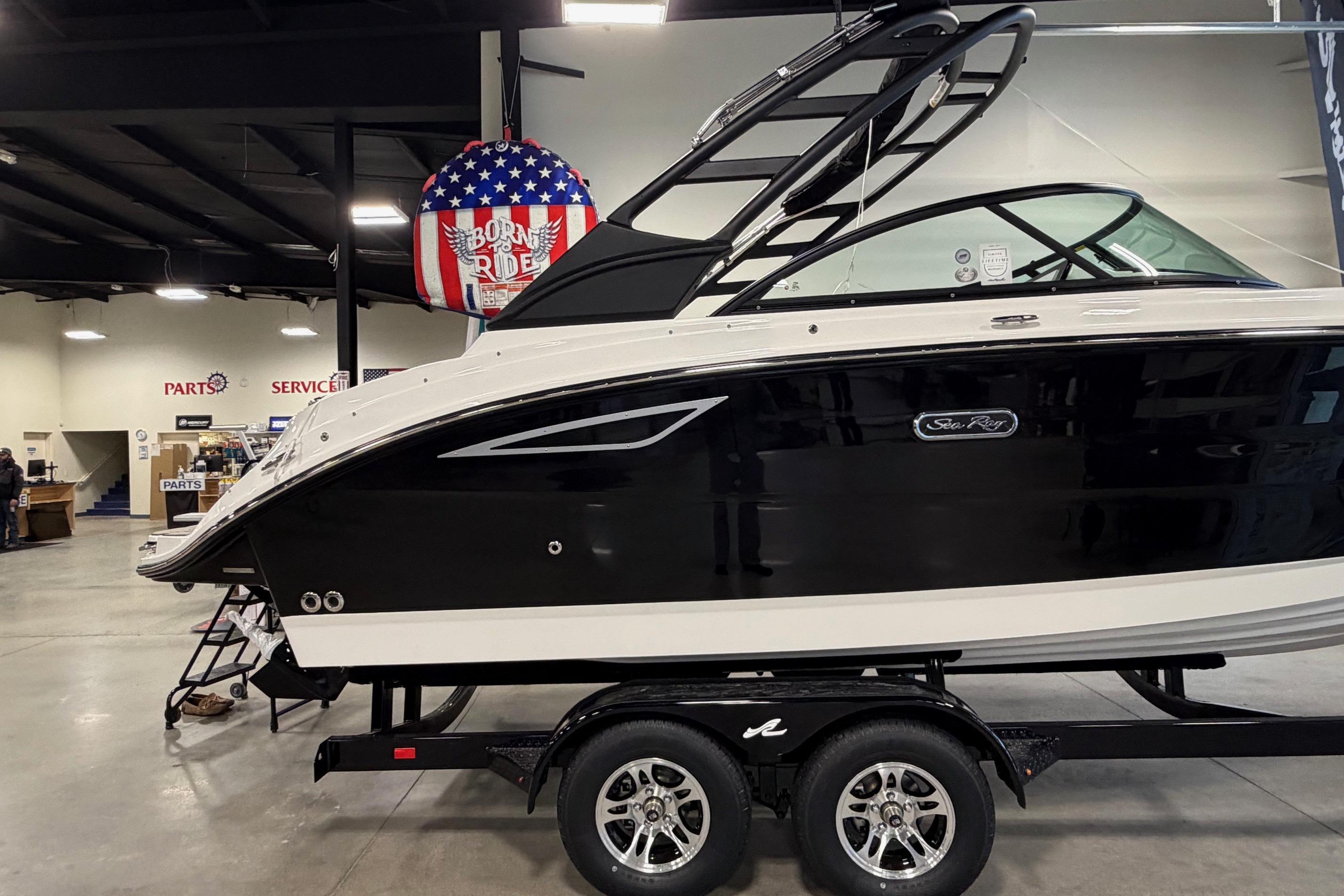Introducing the stunning 2026 Sea Ray SDX 230 Surf, a remarkable deck boat designed for both performance and leisure. With an overall length of 23.17 feet, this new vessel showcases a sleek modified vee hull made from durable fiberglass, ensuring stability and agility on the water. Powered by a robust Mercruiser 6.2L 350 MPI DTS BR4 engine, delivering an impressive 350 horsepower, the SDX 230 Surf promises exhilarating rides and smooth cruising experiences. Its inboard/outboard configuration enhances maneuverability, making it perfect for surf enthusiasts and casual boaters alike. The boat is equipped with modern features that enhance your time on the water, providing comfort and convenience. Whether you’re enjoying a day of watersports or relaxing with friends, the Sea Ray SDX 230 Surf is designed to elevate your boating adventures to new heights. Experience the perfect blend of style, performance, and innovation with this exceptional deck boat.