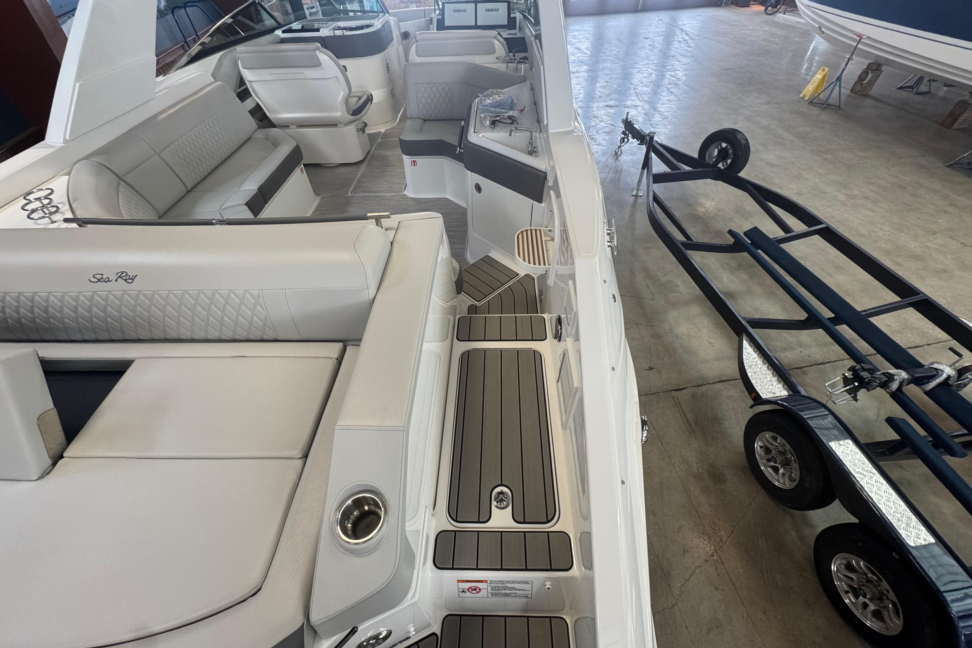 Introducing the stunning 2026 Sea Ray SLX 310, a remarkable bowrider that combines elegance with performance. With an impressive overall length of 31.5 feet, this new vessel is crafted from durable fiberglass, featuring a modified vee hull shape that ensures a smooth ride on the water. Powered by twin Mercruiser ECT 6.2L MPIAX BR3X engines, delivering a robust 350 horsepower, the SLX 310 promises exhilarating adventures and effortless cruising. The inboard/outboard configuration enhances maneuverability, making it perfect for both leisurely outings and spirited excursions. This model is designed with modern amenities, including a well-appointed head for convenience. The attention to detail and quality craftsmanship make the Sea Ray SLX 310 an exceptional choice for those seeking luxury and performance on the water. Experience the thrill of boating with this exquisite vessel that is ready to create unforgettable memories.
