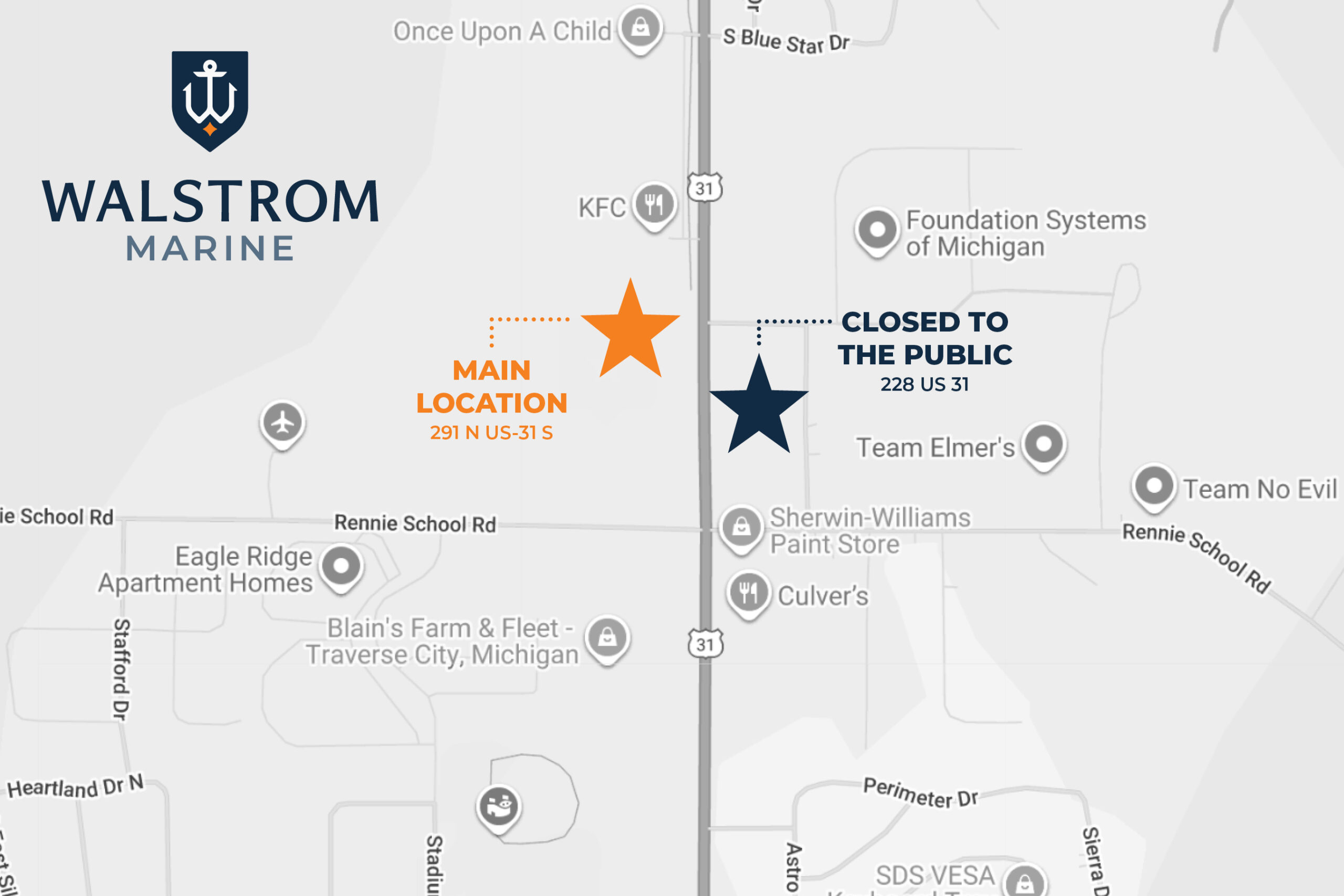 Traverse City, MI – Walstrom Marine has consolidated its Traverse City operations to a single customer-facing location at 291 N US-31 South, the former Grand Bay Marine building located next to KFC. The company had previously operated out of two facilities across the highway from one another. This change brings all sales, service, and parts operations together under one roof to create a more efficient and convenient experience for customers.